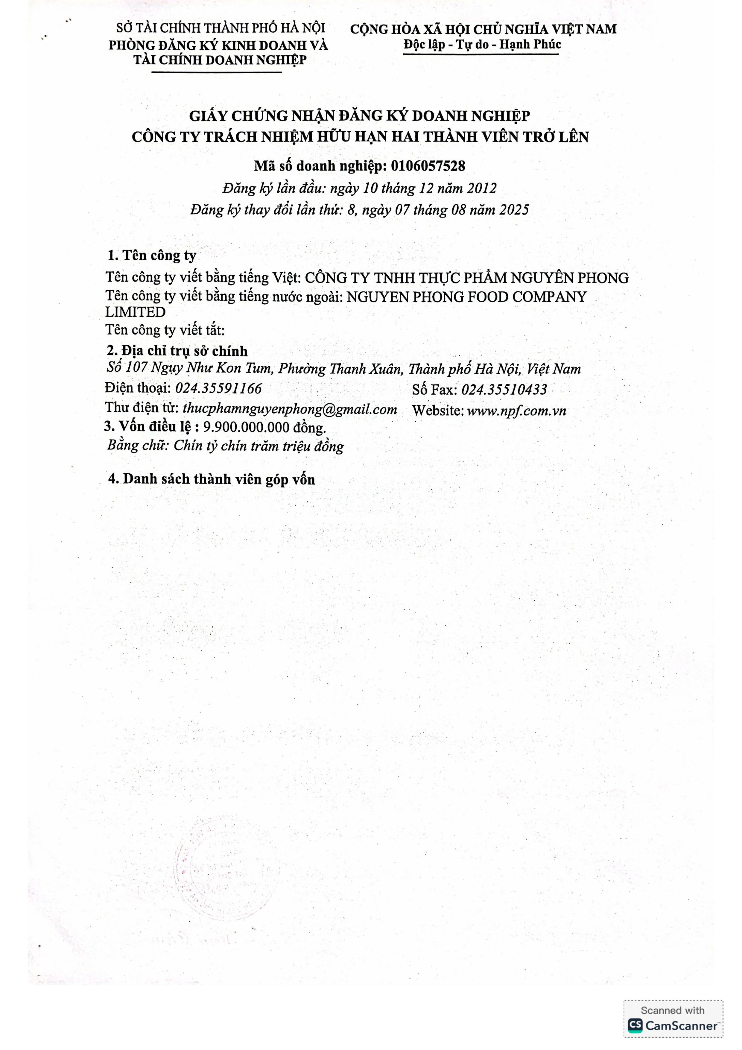 Công ty TNHH Thực Phẩm Nguyên Phong