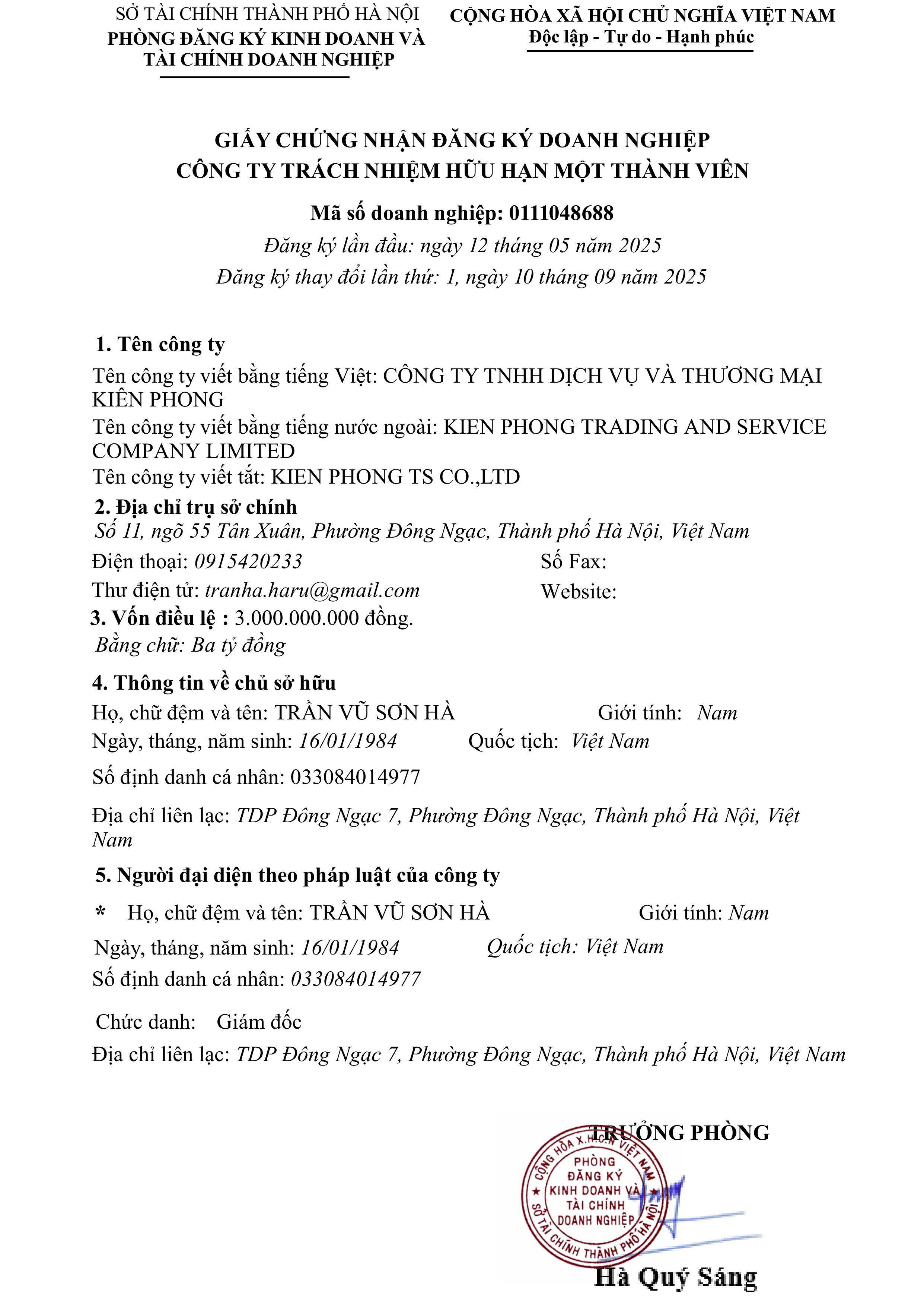 Công ty TNHH dịch vụ và thương mại Kiên Phong