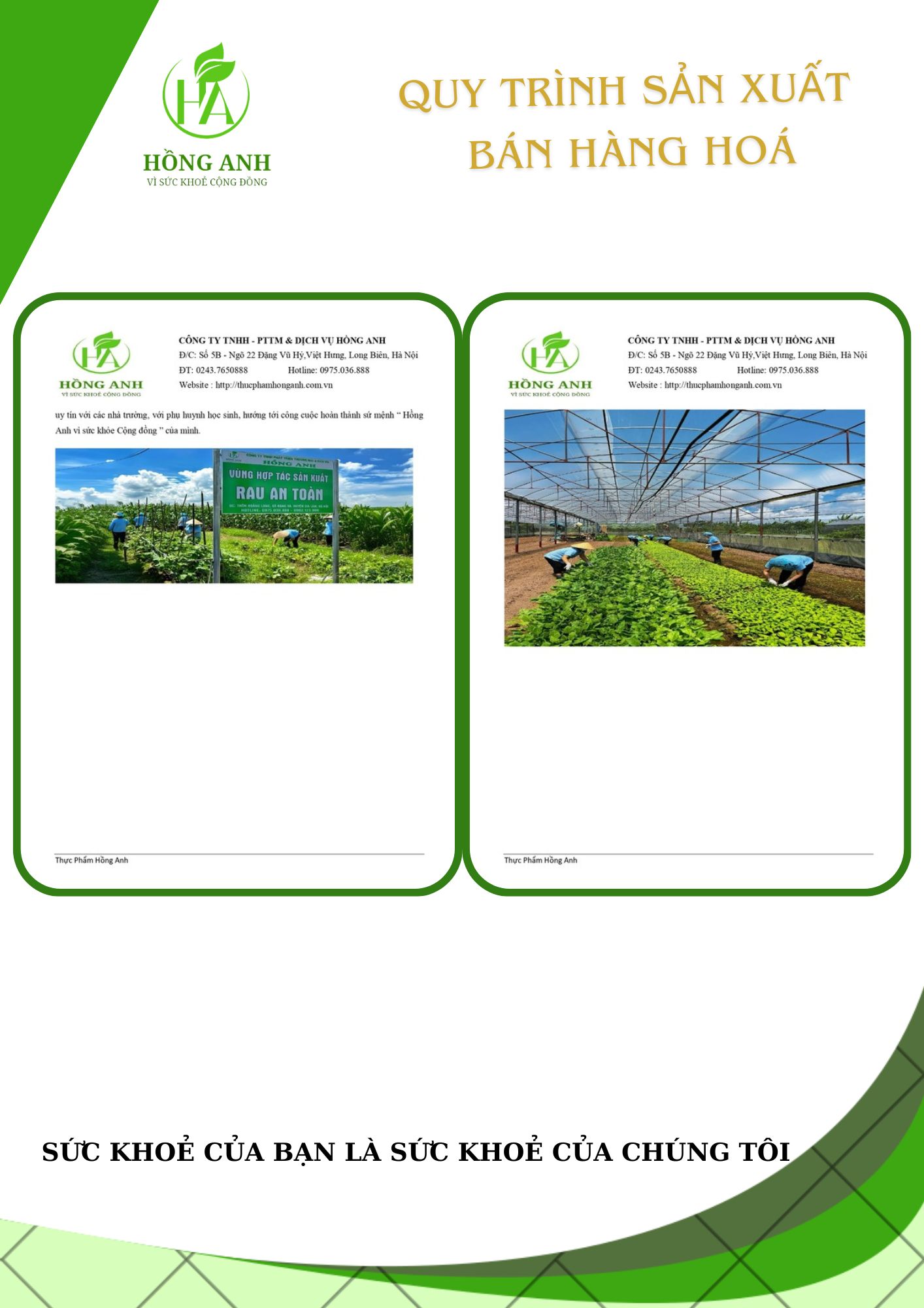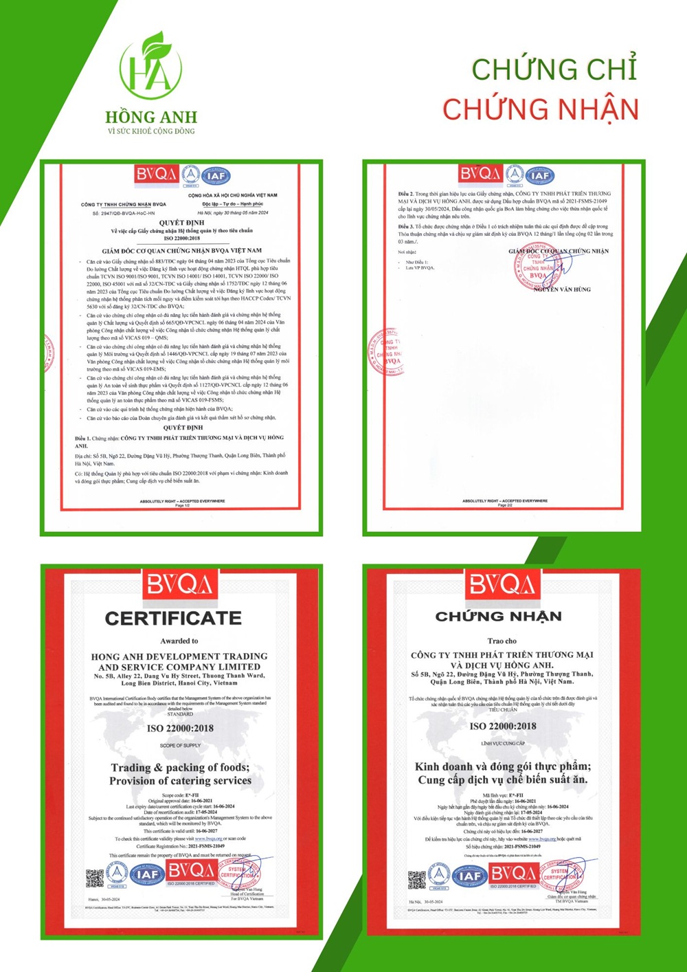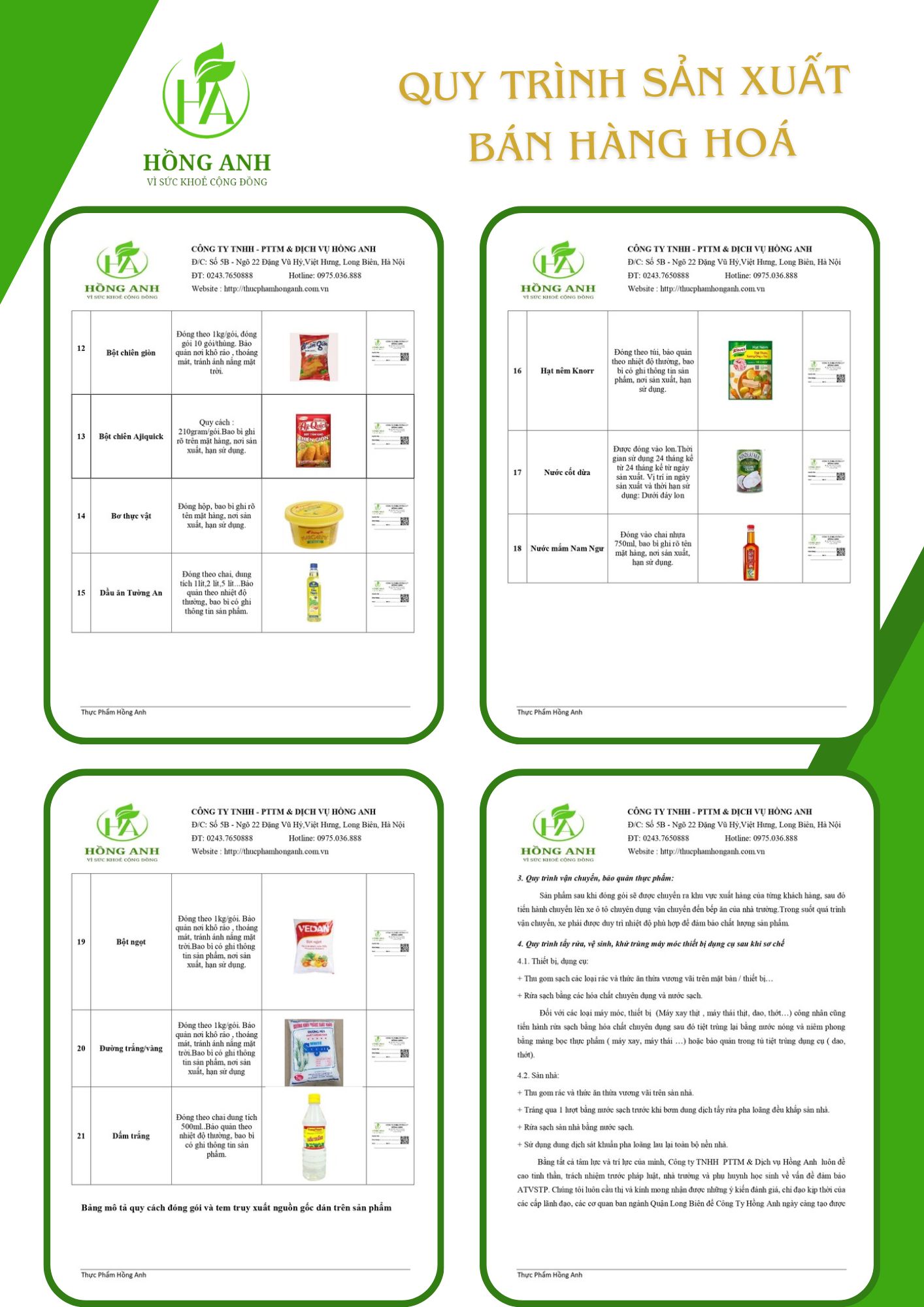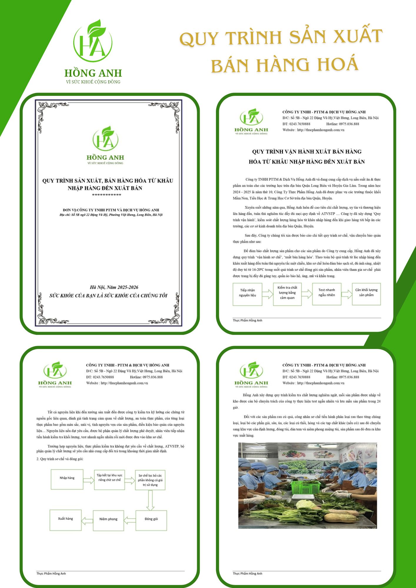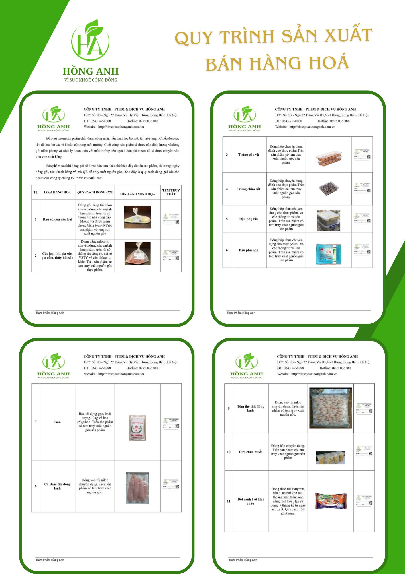 Thực phẩm sạch và an toàn: Công ty TNHH PTTM & DV Hồng Anh cam kết cung cấp các loại thực phẩm đạt tiêu chuẩn VSATTP.