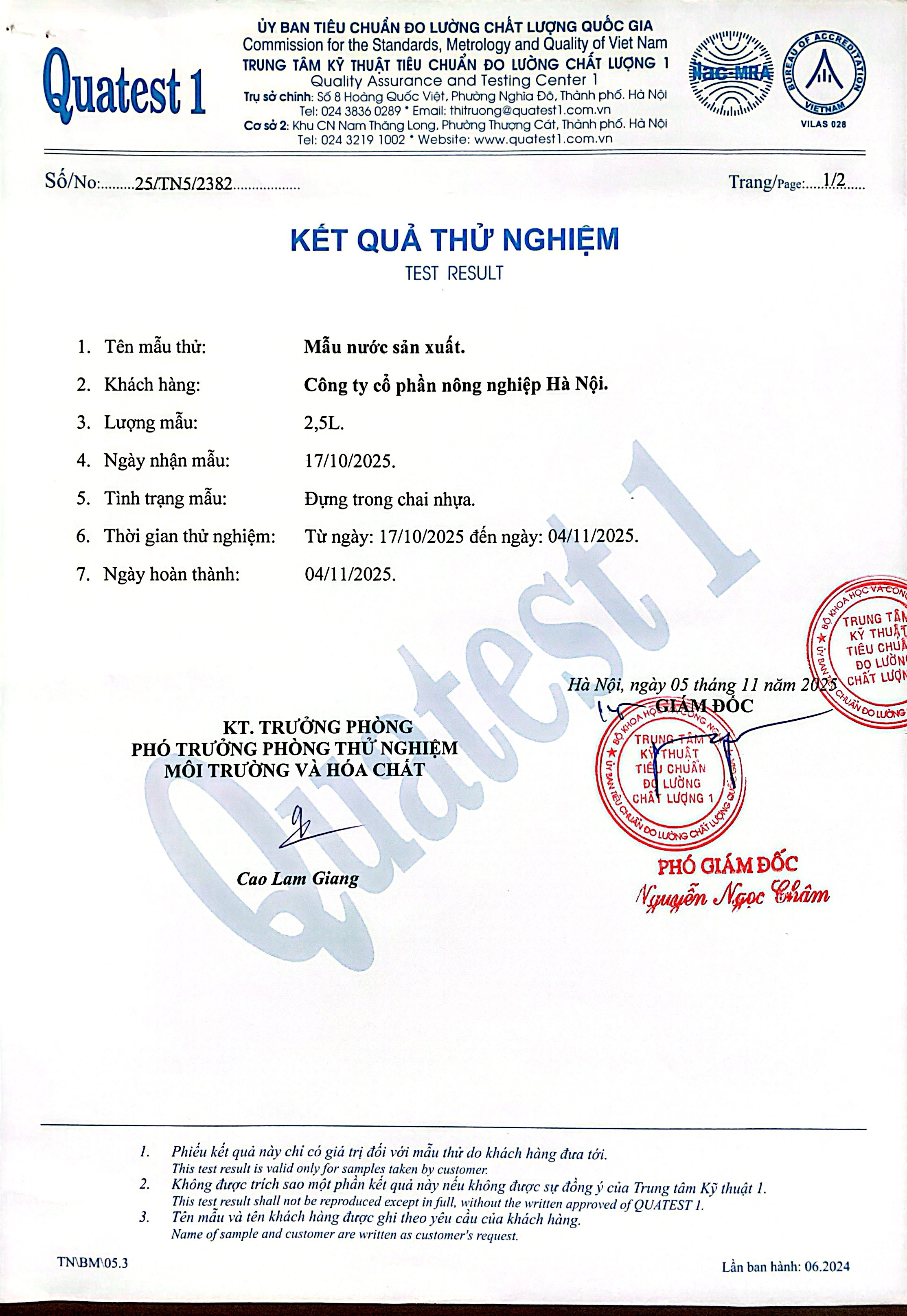 Phiếu kiểm nghiệm