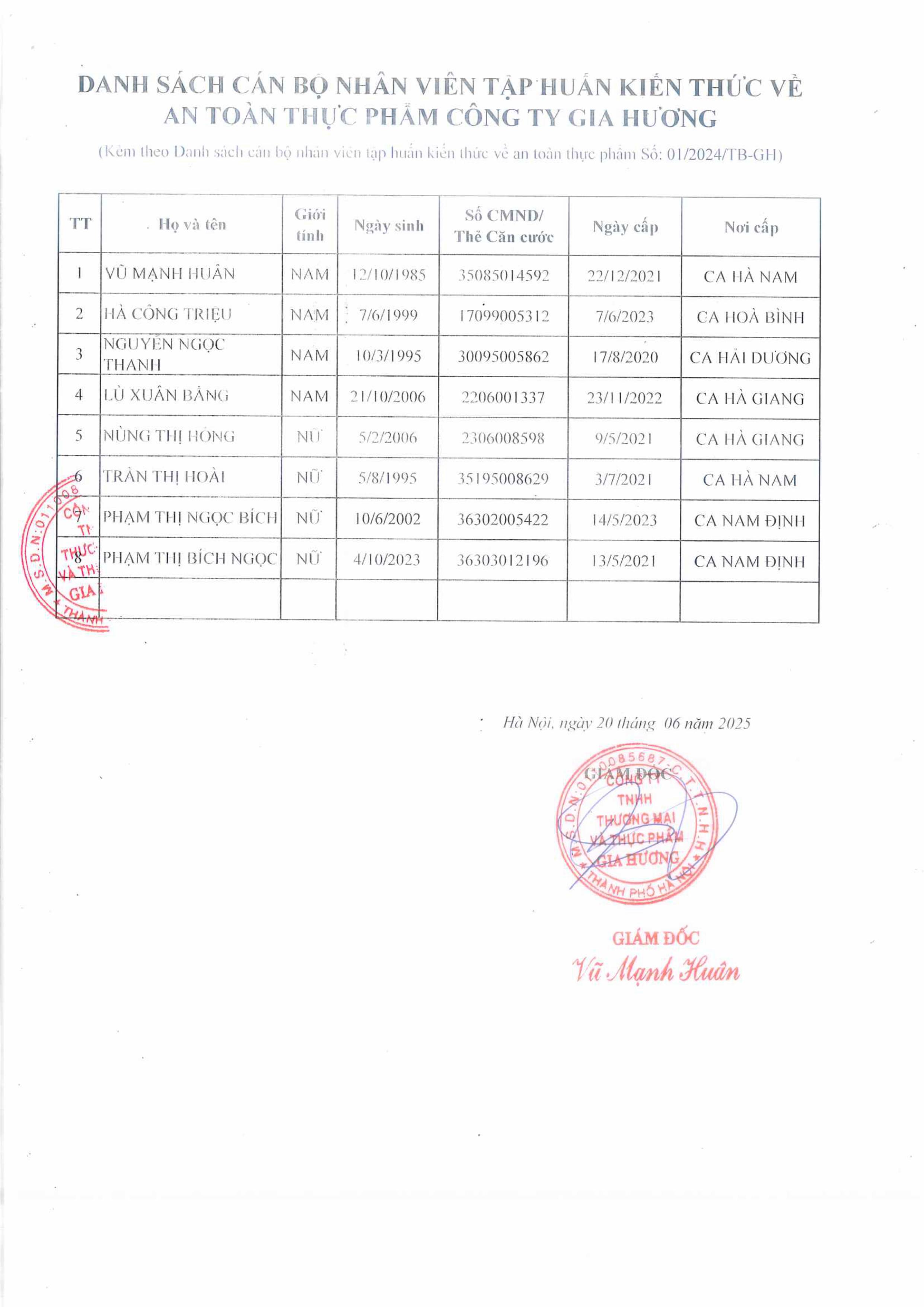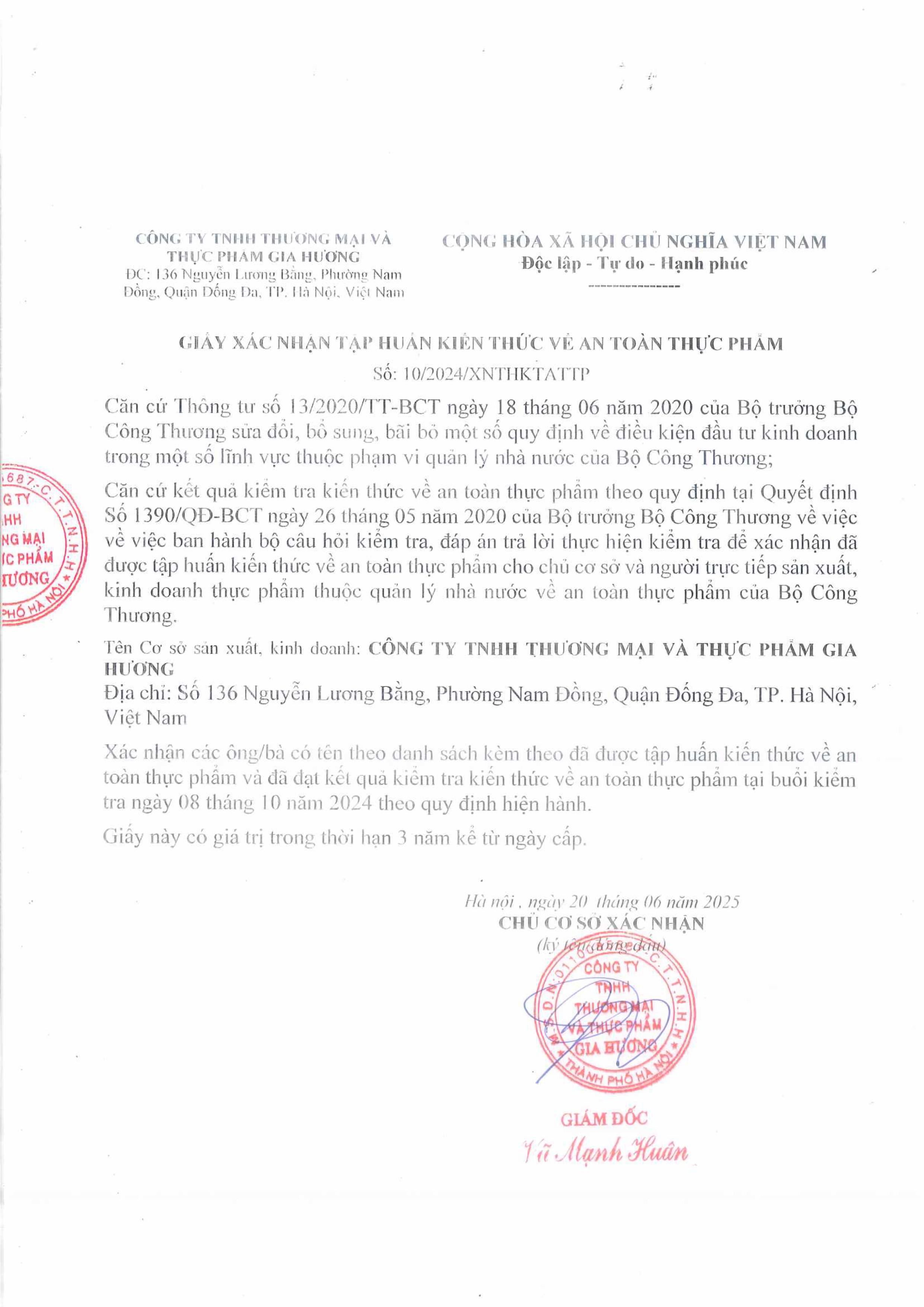 Tên đơn vị/nhà sản xuất: Công ty TNHH thương mại và thực phẩm Gia Hương