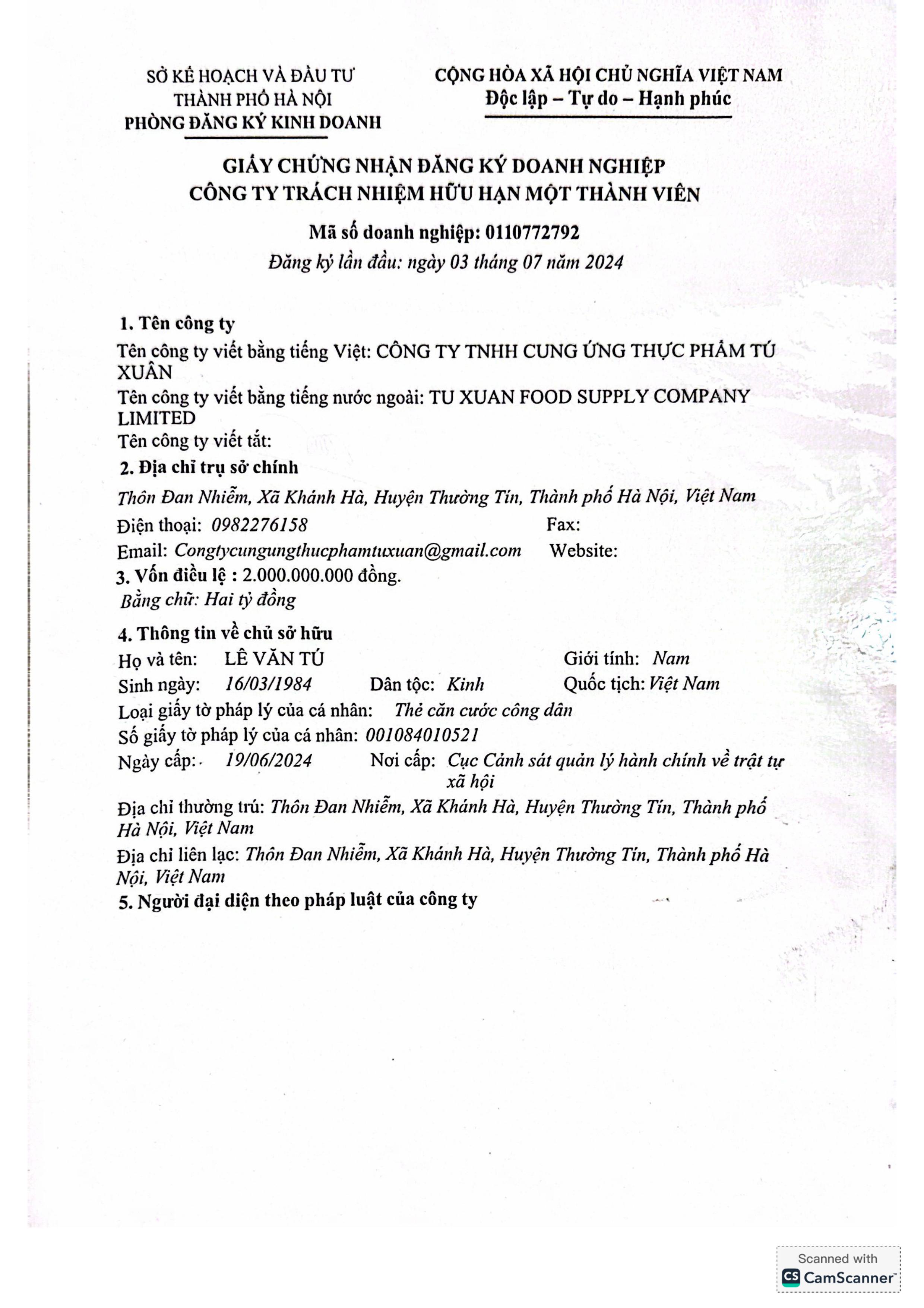 Tên đơn vị/nhà sản xuất: Công ty TNHH cung ứng thực phẩm Tú Xuân