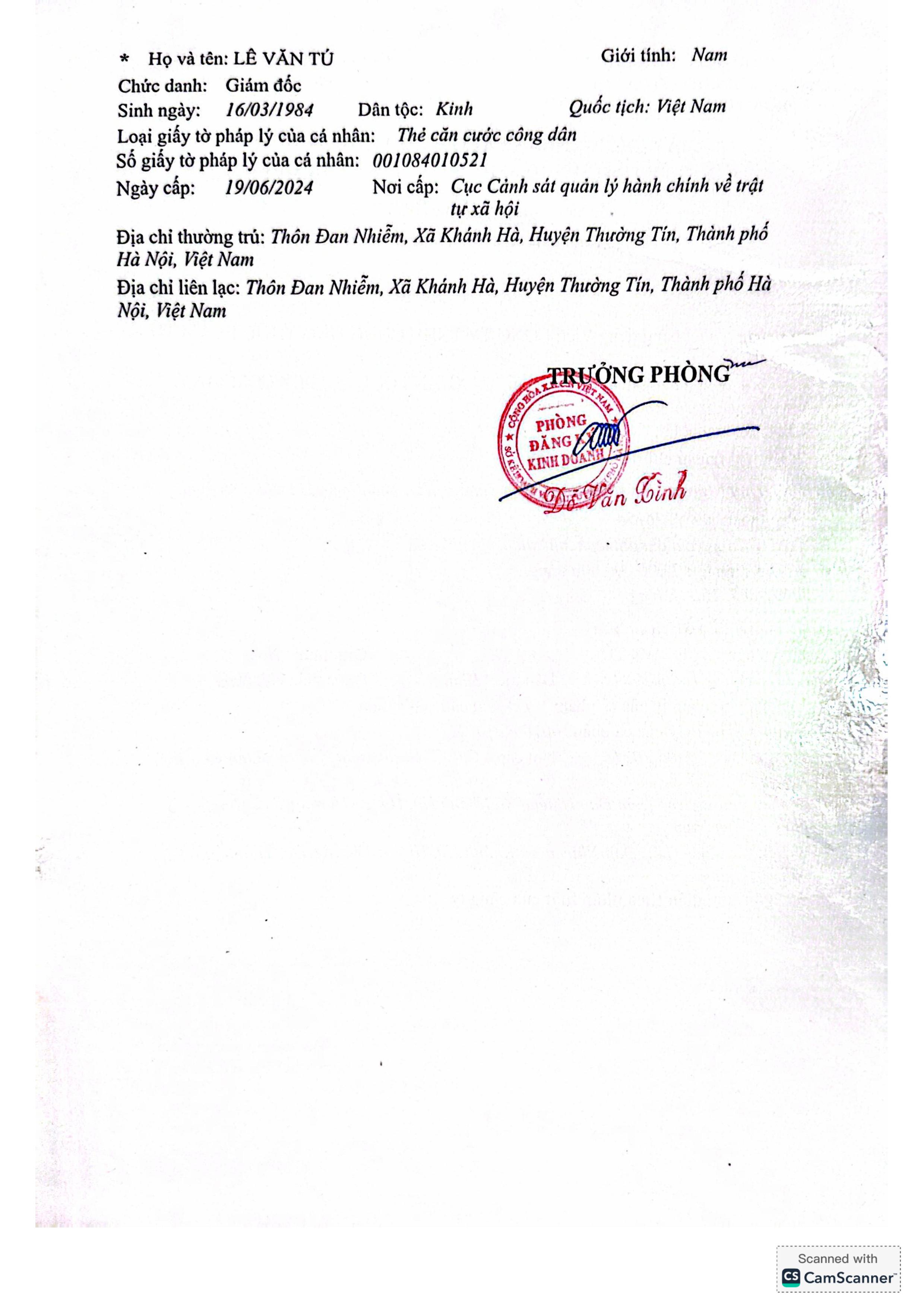 Địa chỉ: Thôn Đan Nhiễm, Khánh Hà, Thường Tín, Hà Nội