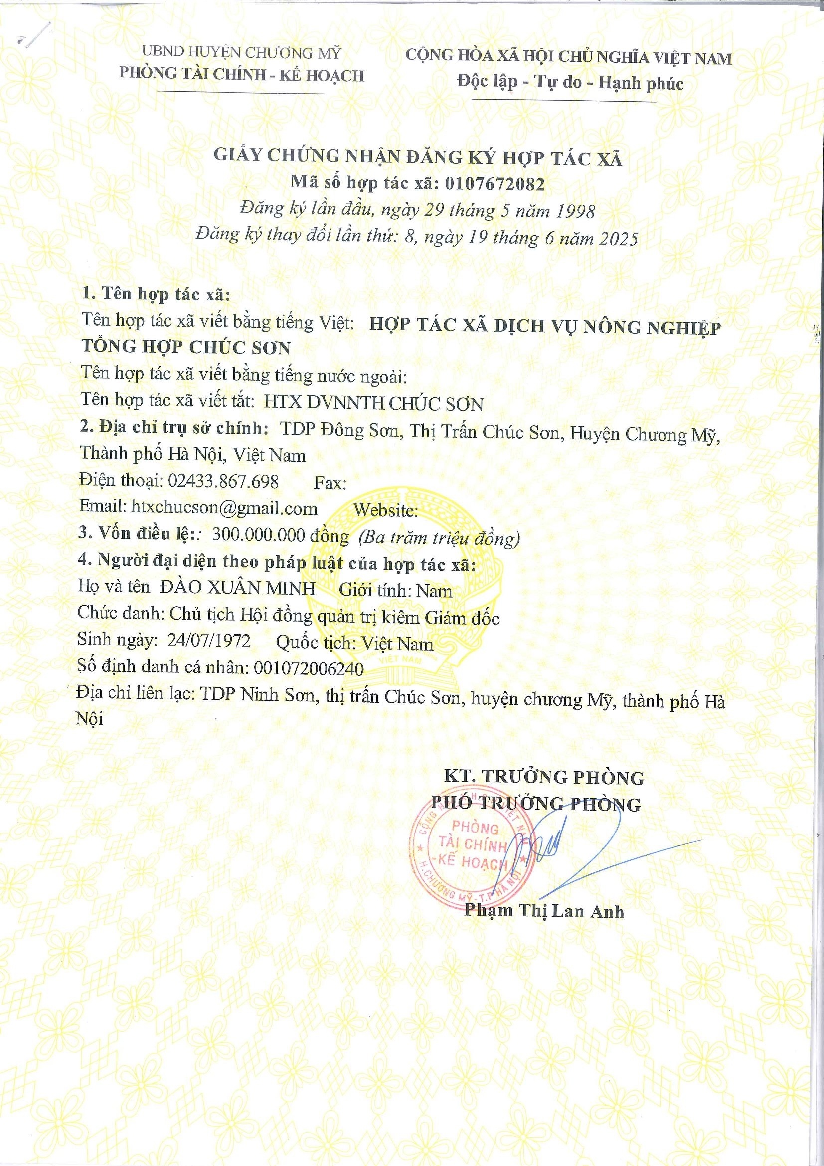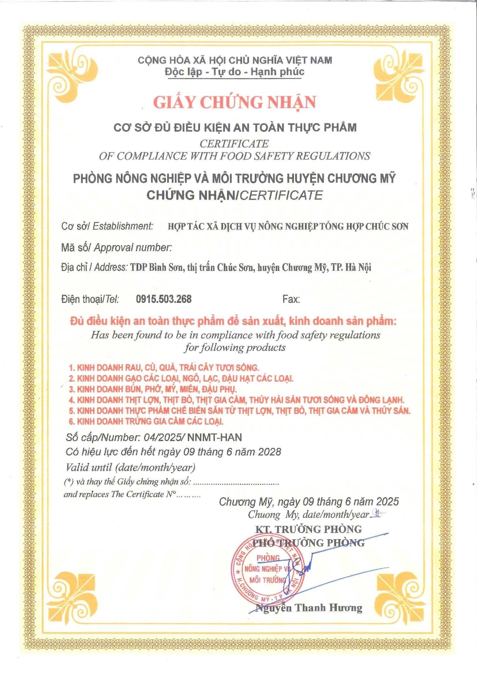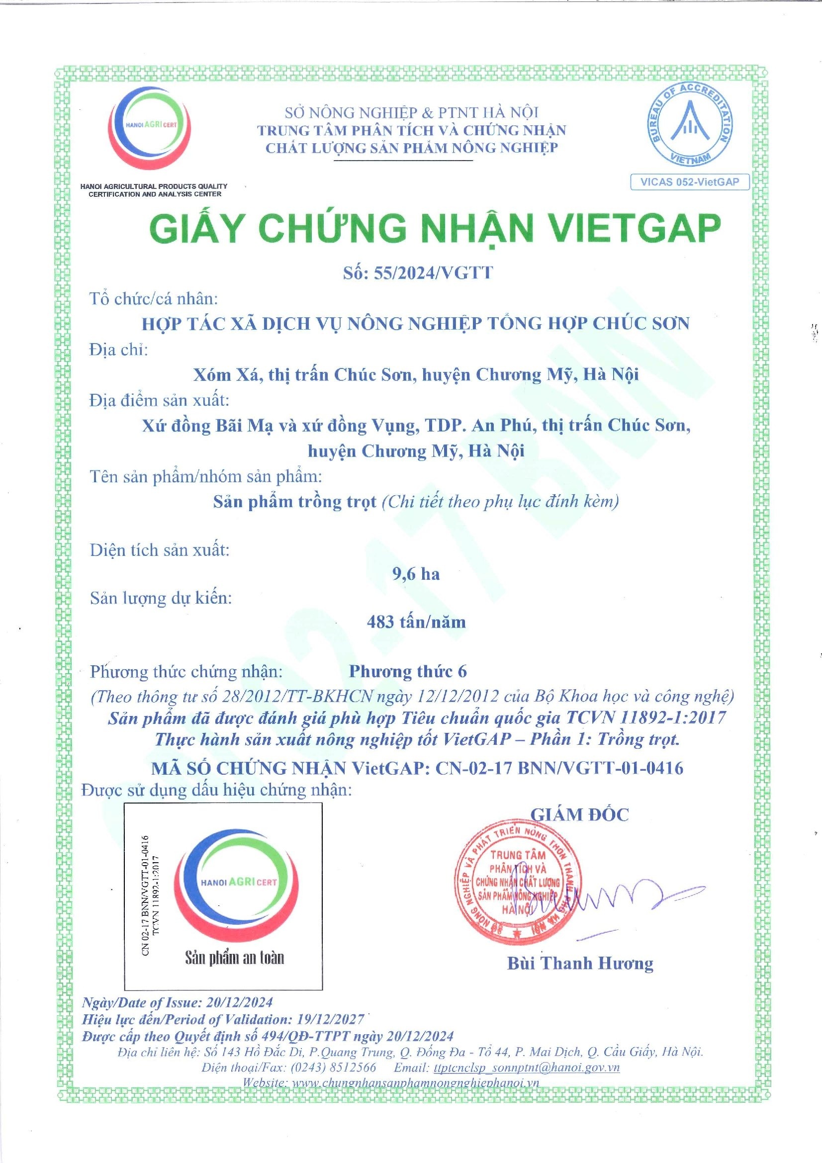 Tên đơn vị/nhà sản xuất: HTX dịch vụ nông nghiệp tổng hợp Chúc Sơn