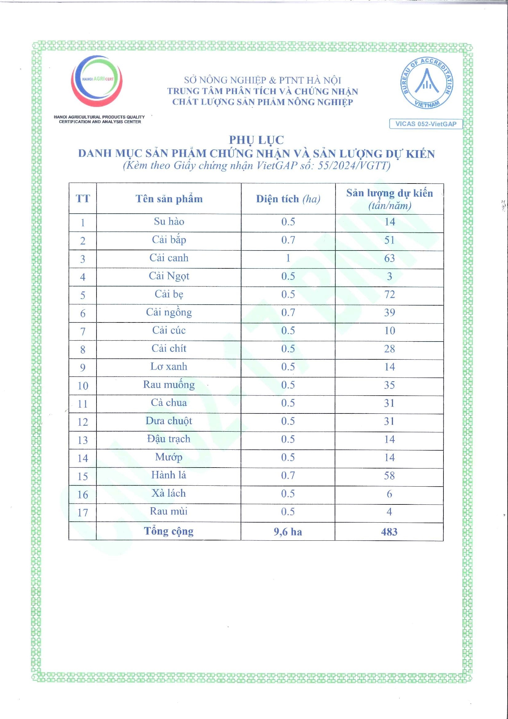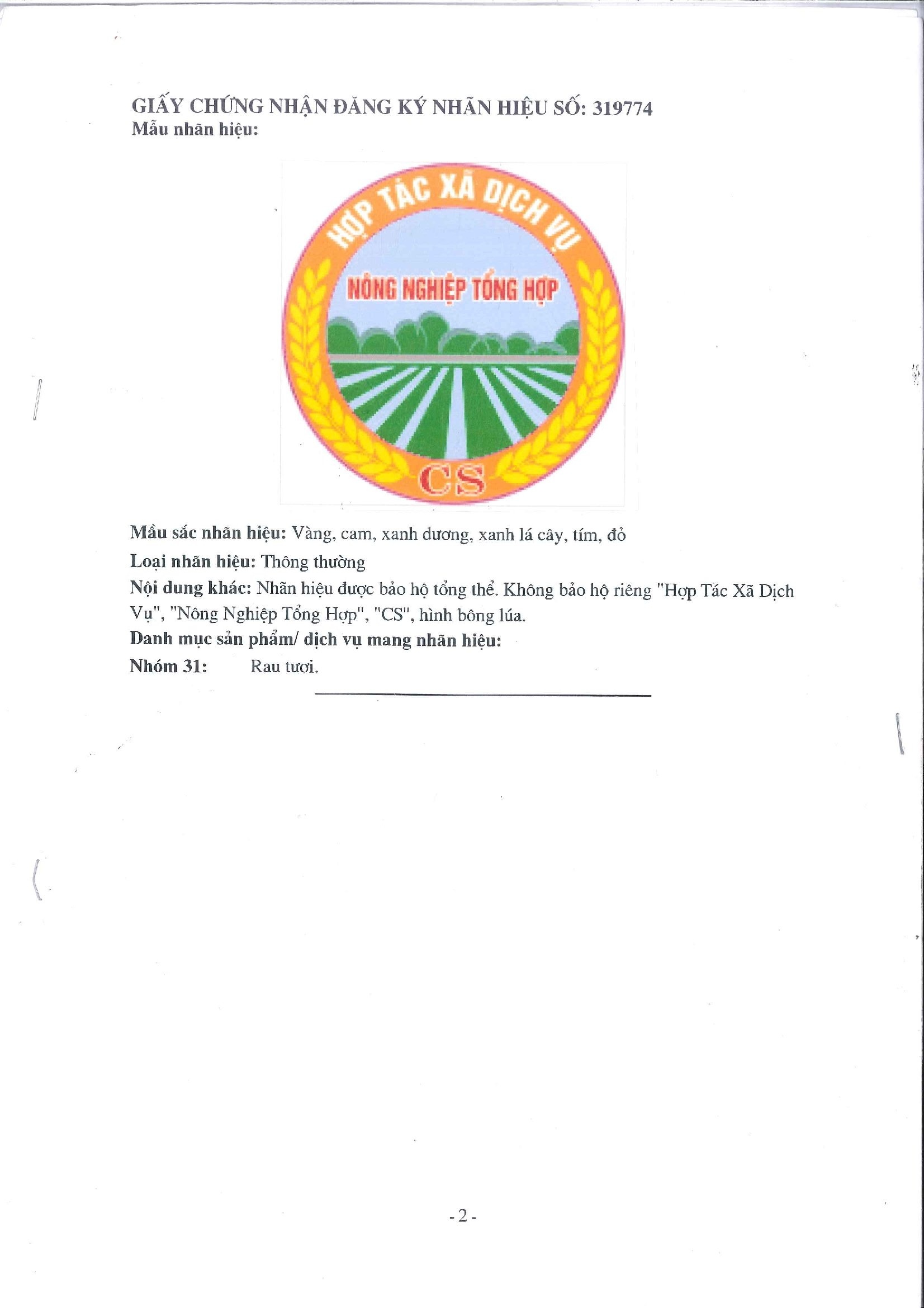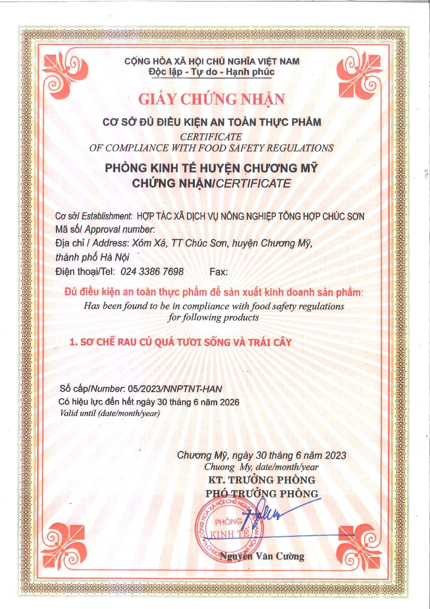 Tên đơn vị/nhà sản xuất: HTX dịch vụ nông nghiệp tổng hợp Chúc Sơn