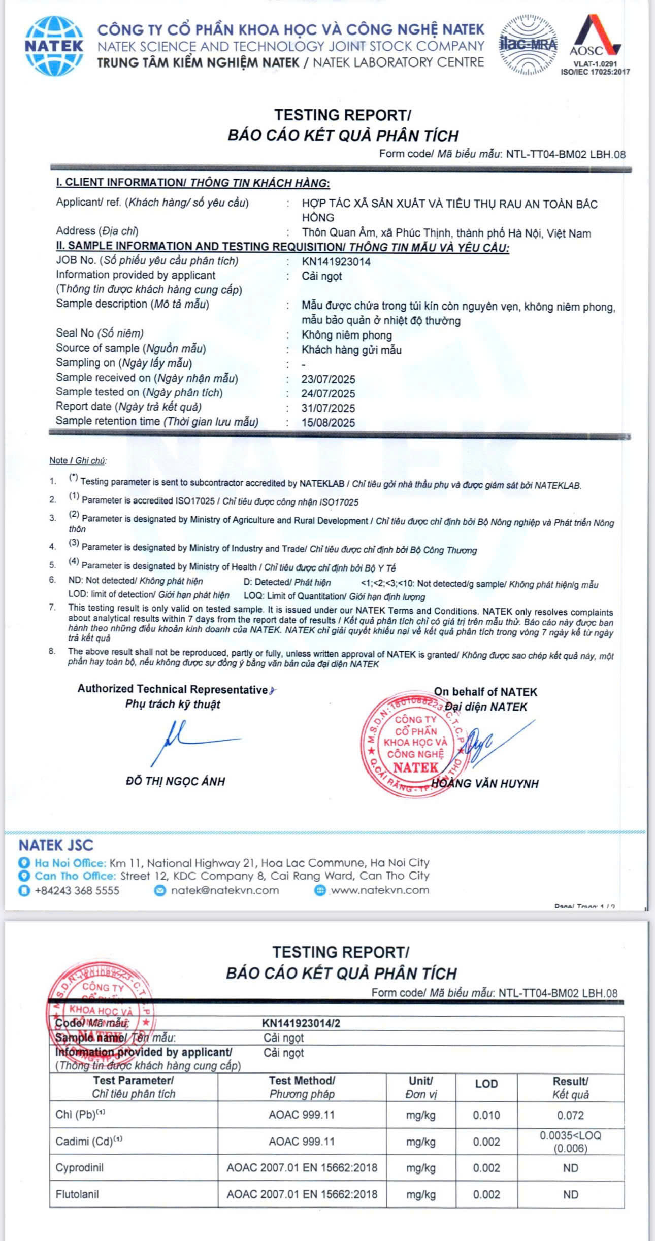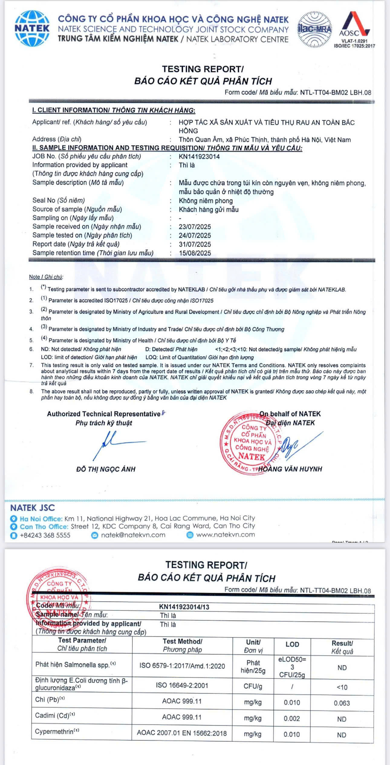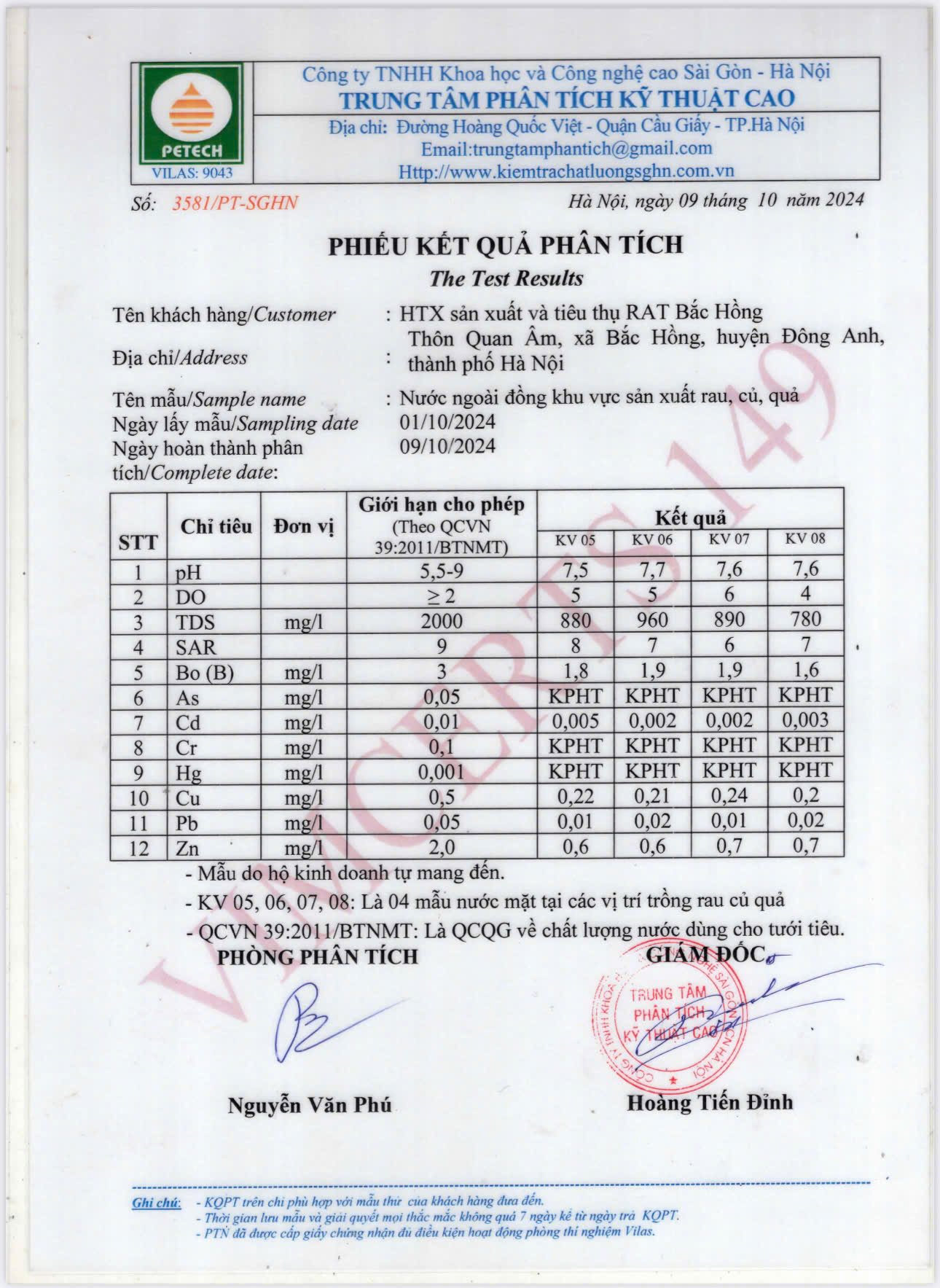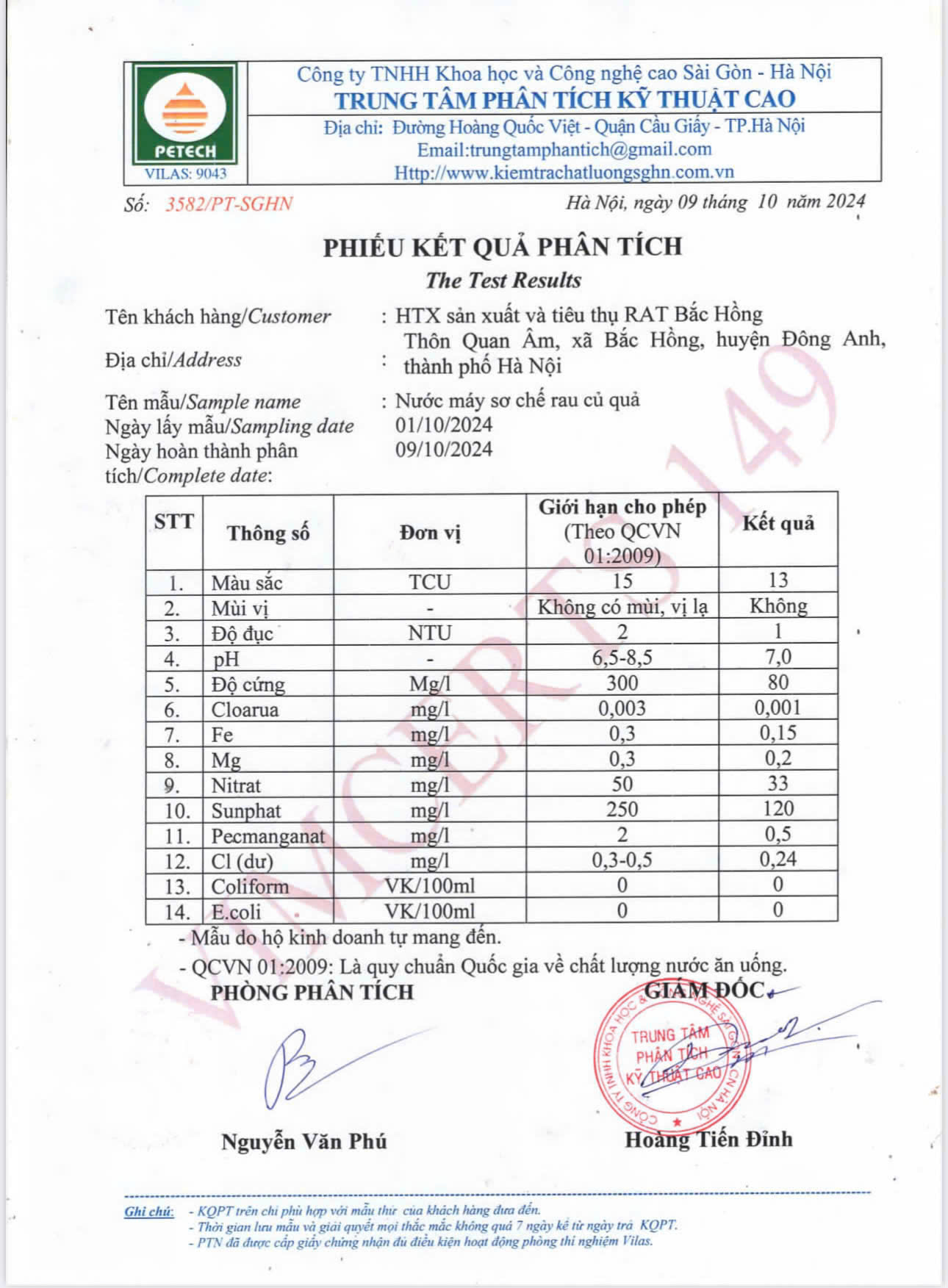 Tên đơn vị/nhà sản xuất: HỢP TÁC XÃ SẢN XUẤT VÀ TIÊU THỤ RAU AN TOÀN BẮC HỒNG