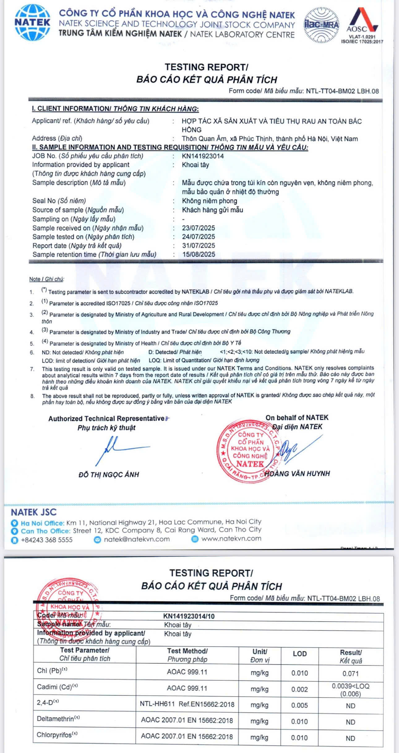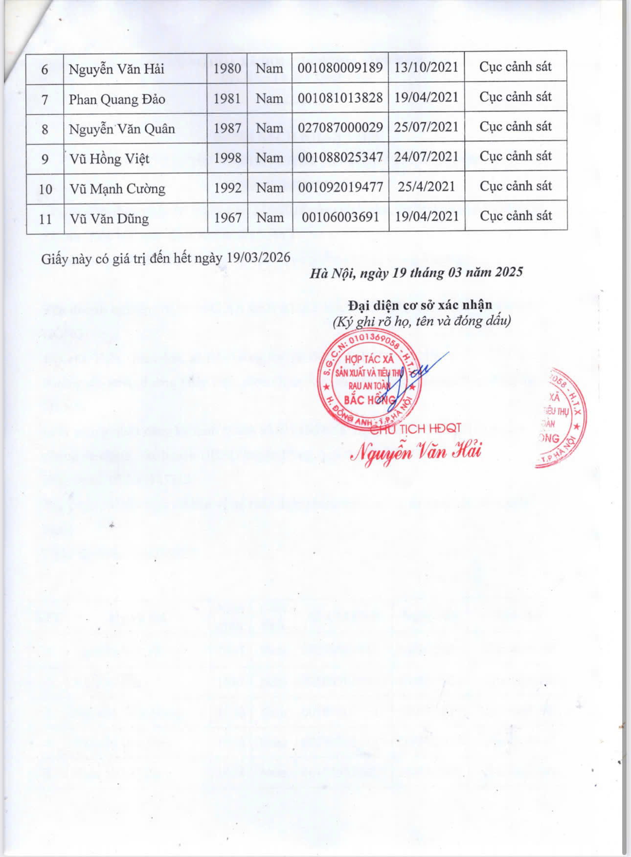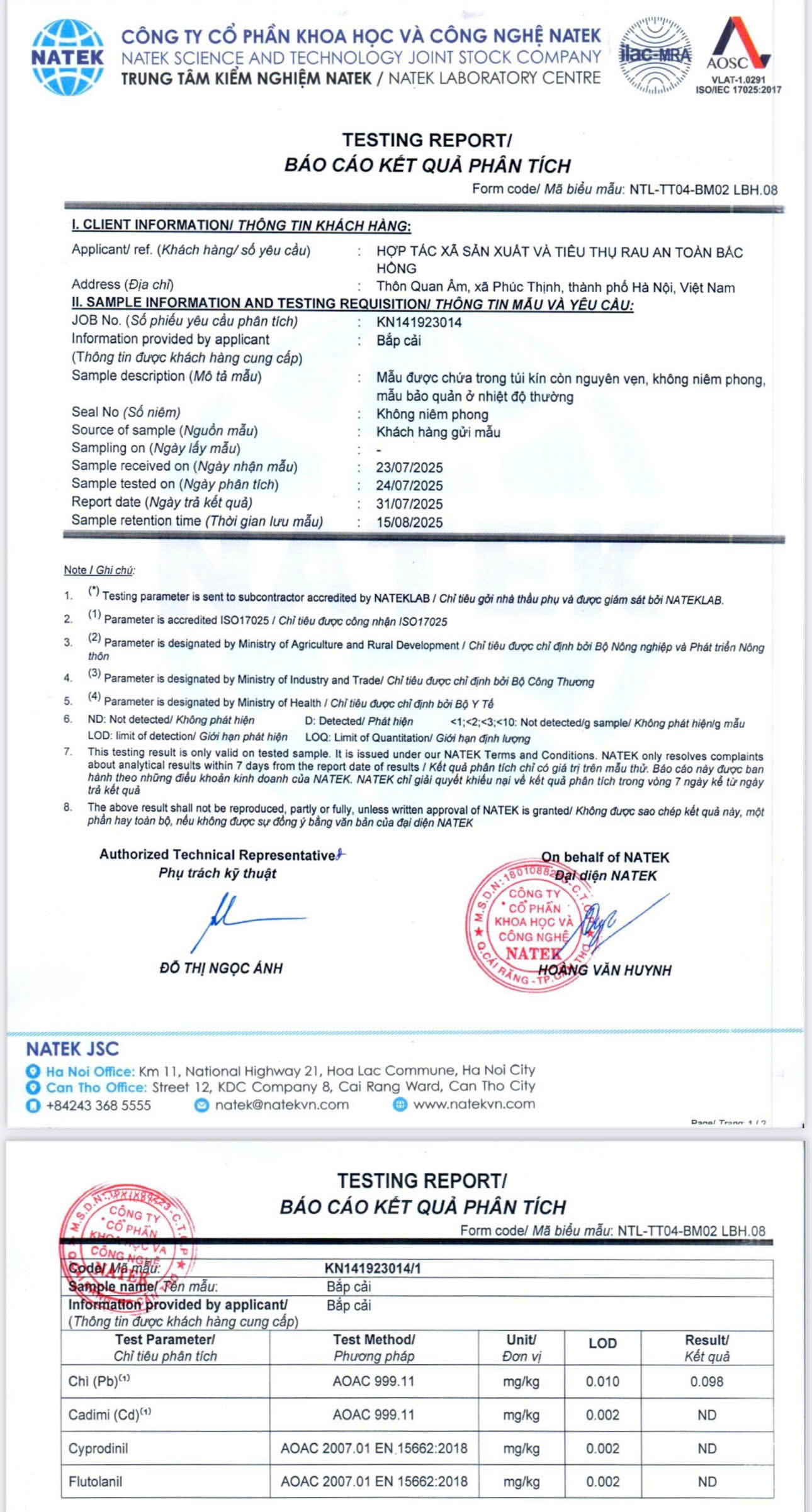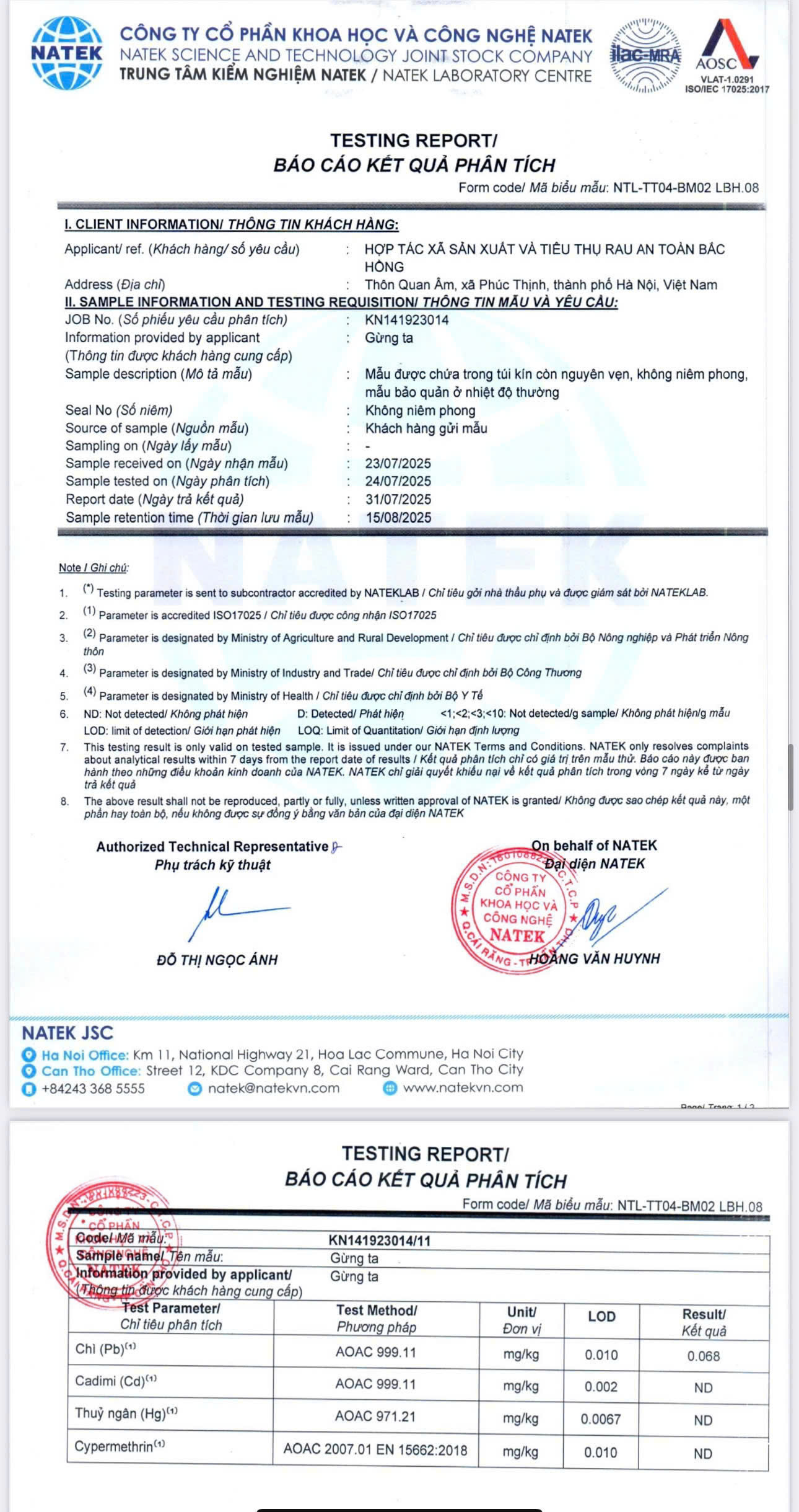 Tên đơn vị/nhà sản xuất: HỢP TÁC XÃ SẢN XUẤT VÀ TIÊU THỤ RAU AN TOÀN BẮC HỒNG