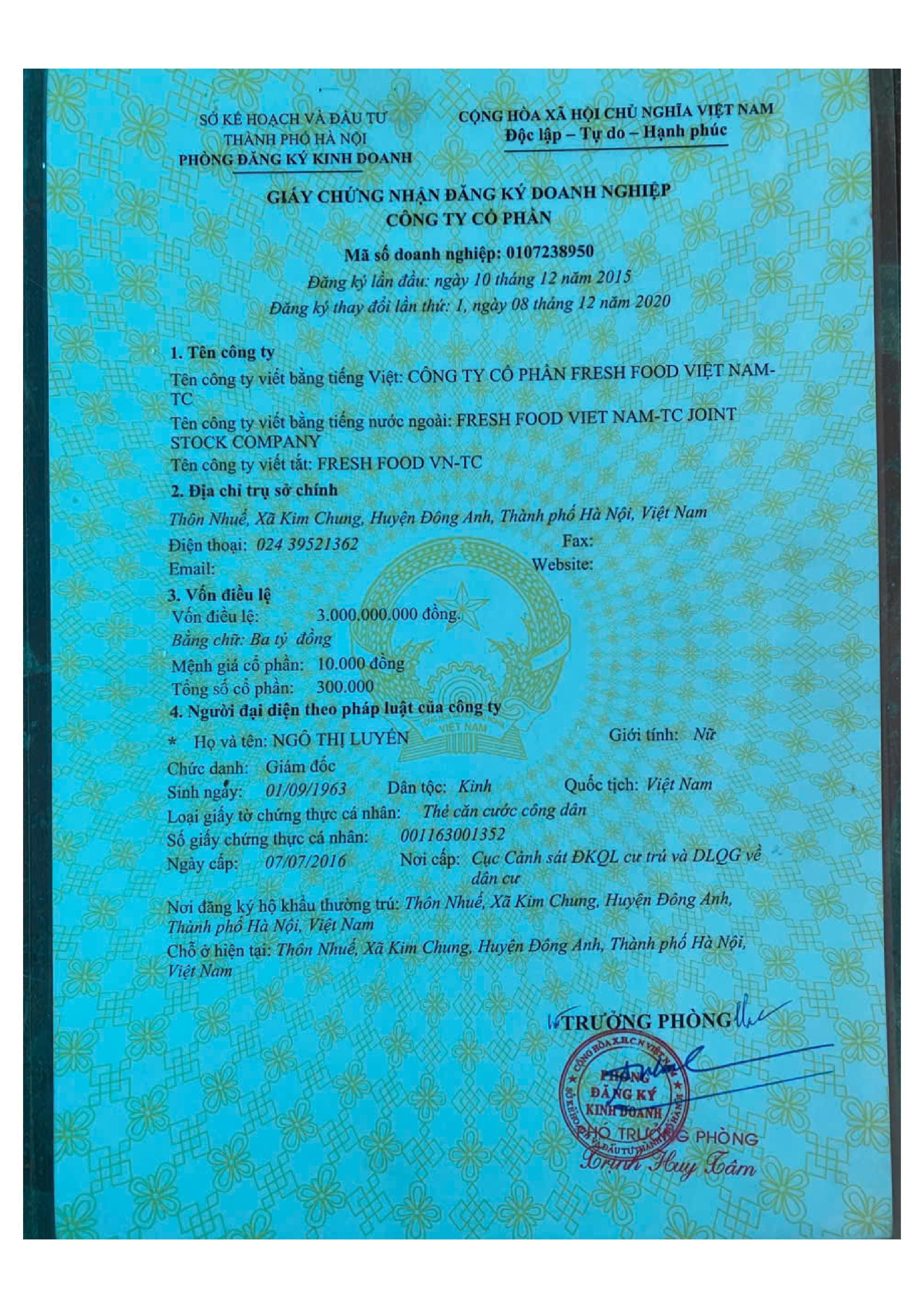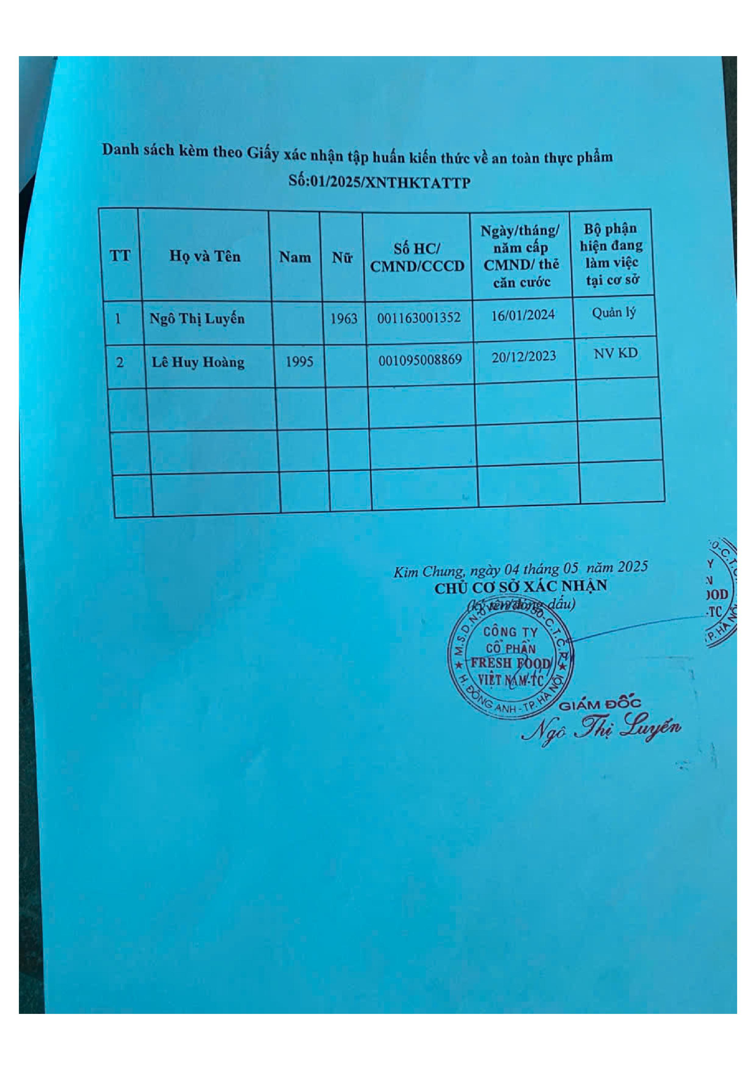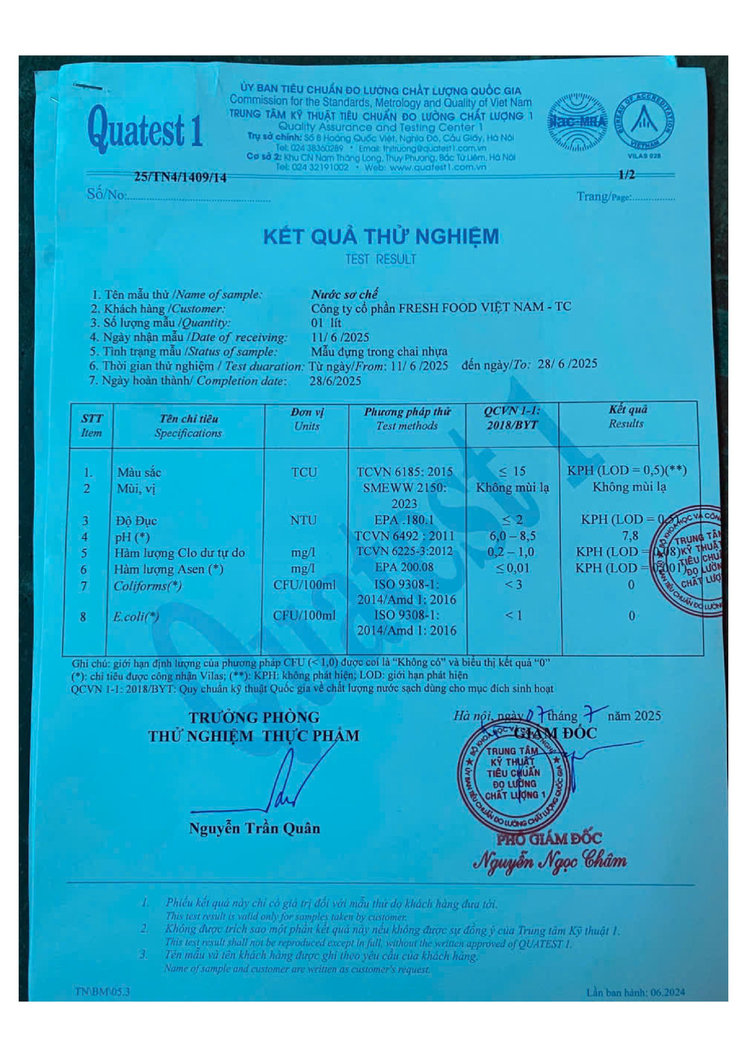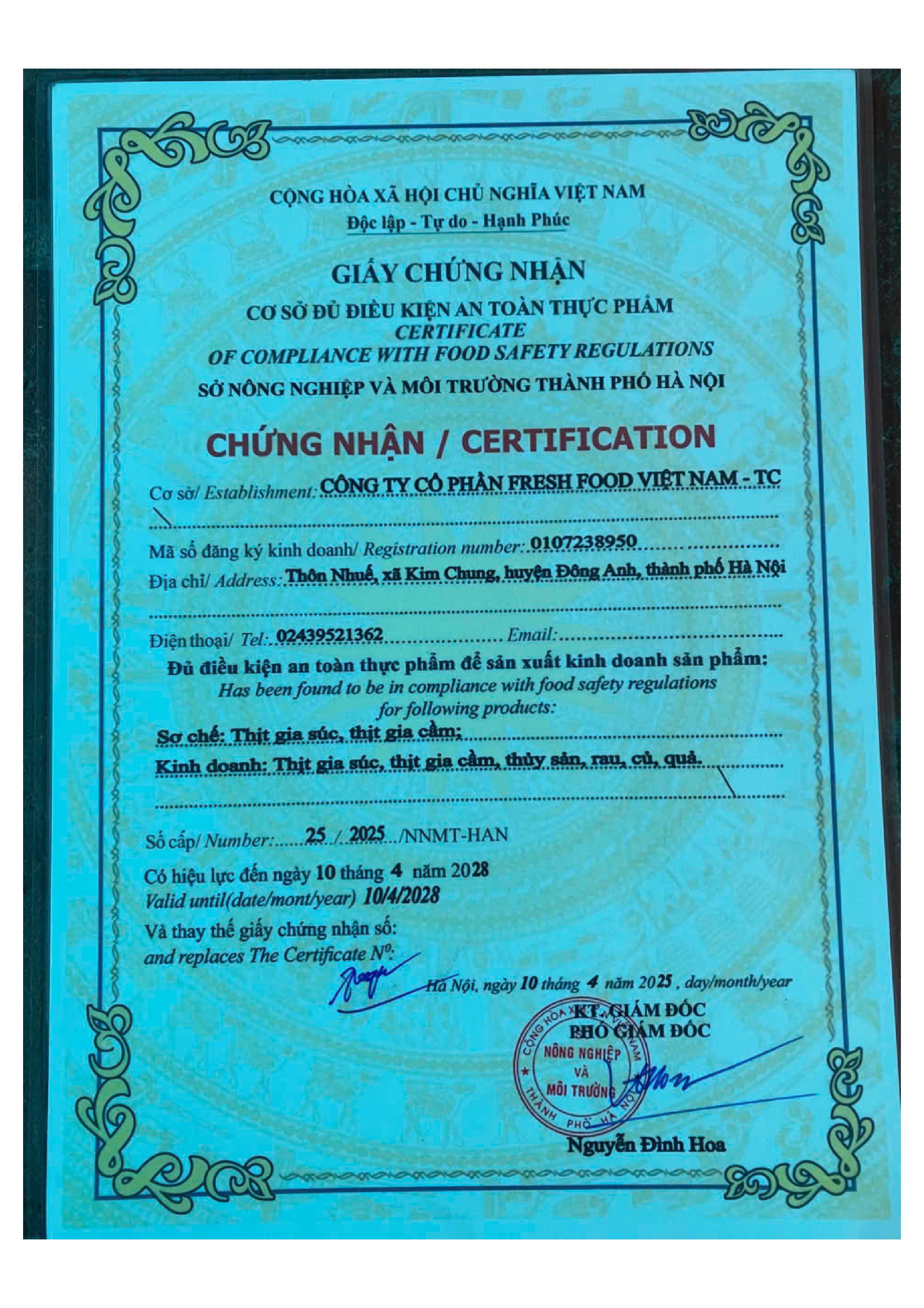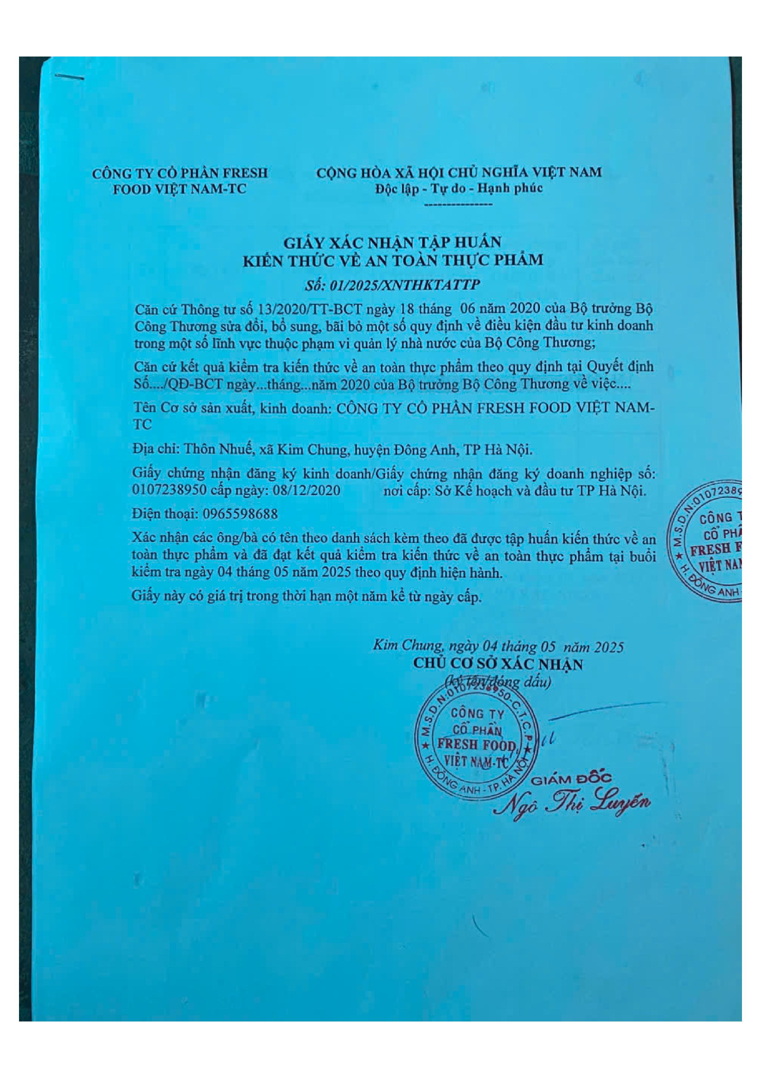 Tên đơn vị/nhà sản xuất: Công ty cổ phần Fresh Food Việt Nam - TC