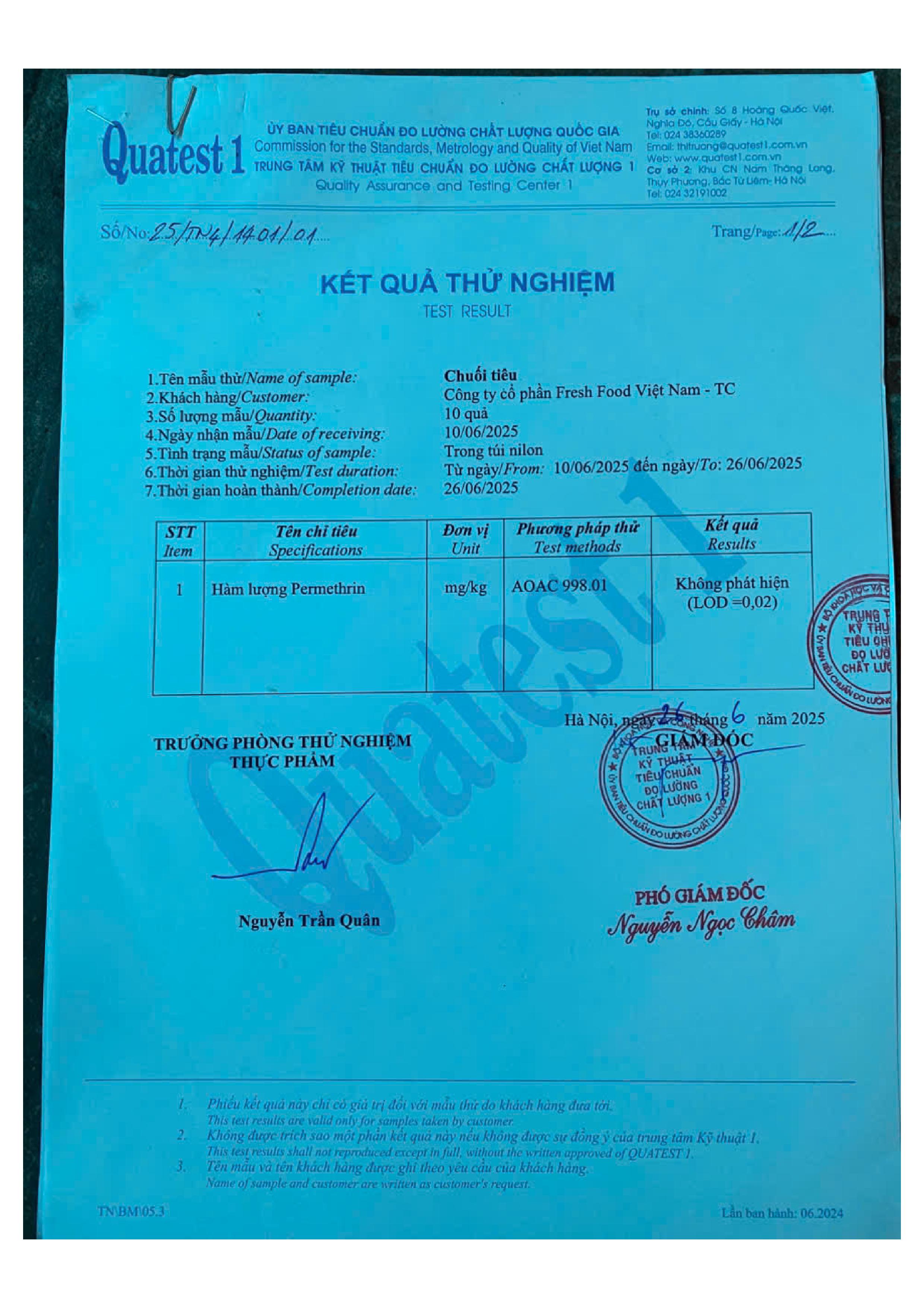 Tên đơn vị/nhà sản xuất: Công ty cổ phần Fresh Food Việt Nam - TC