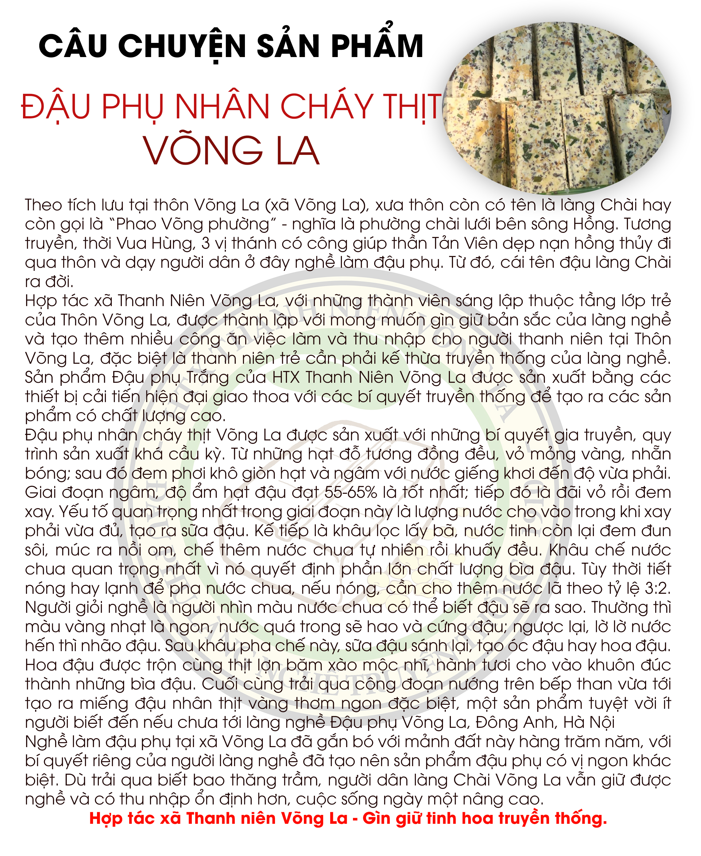 - Tên sản phẩm: Đậu phụ nhân cháy thịt Làng Chài Võng La - (Cá thể: )