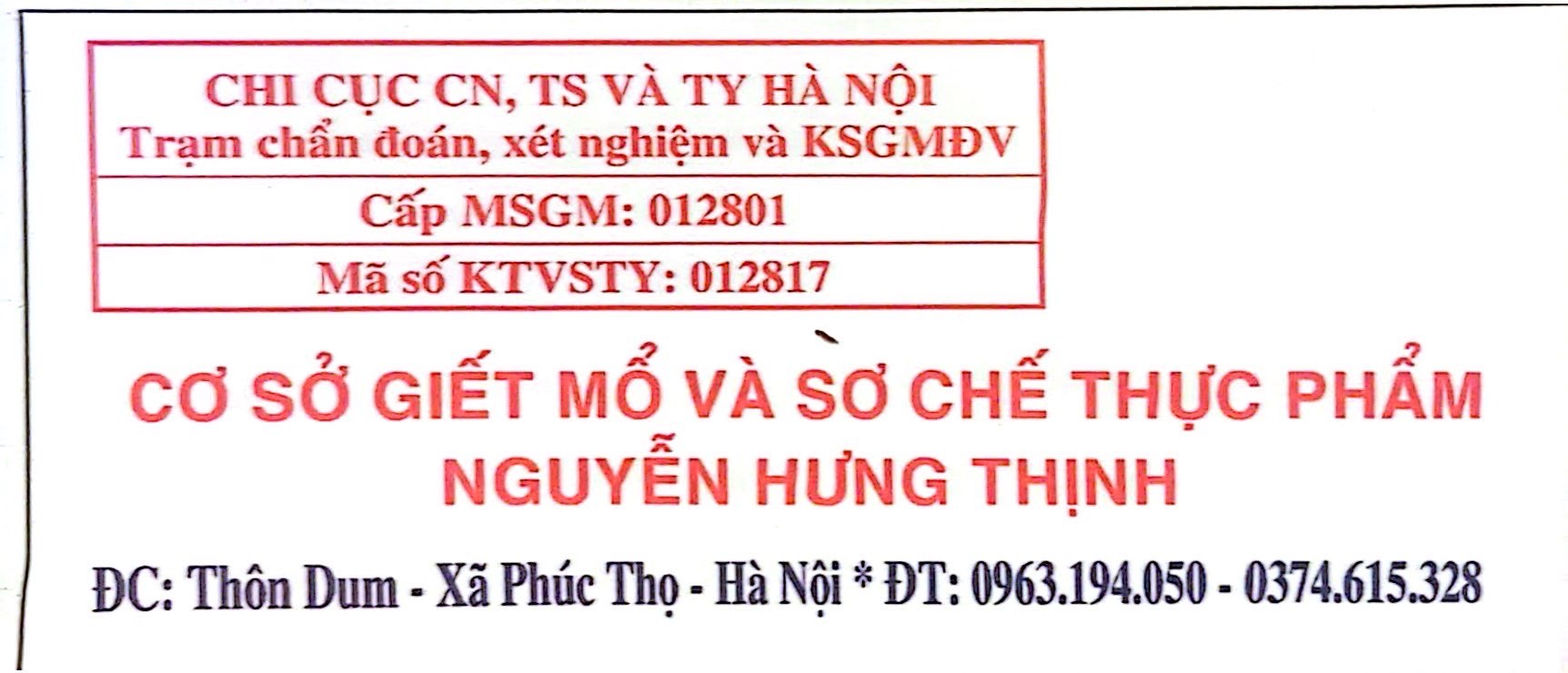 Tên đơn vị/nhà sản xuất: Hộ kinh doanh Nguyễn Hưng Thịnh