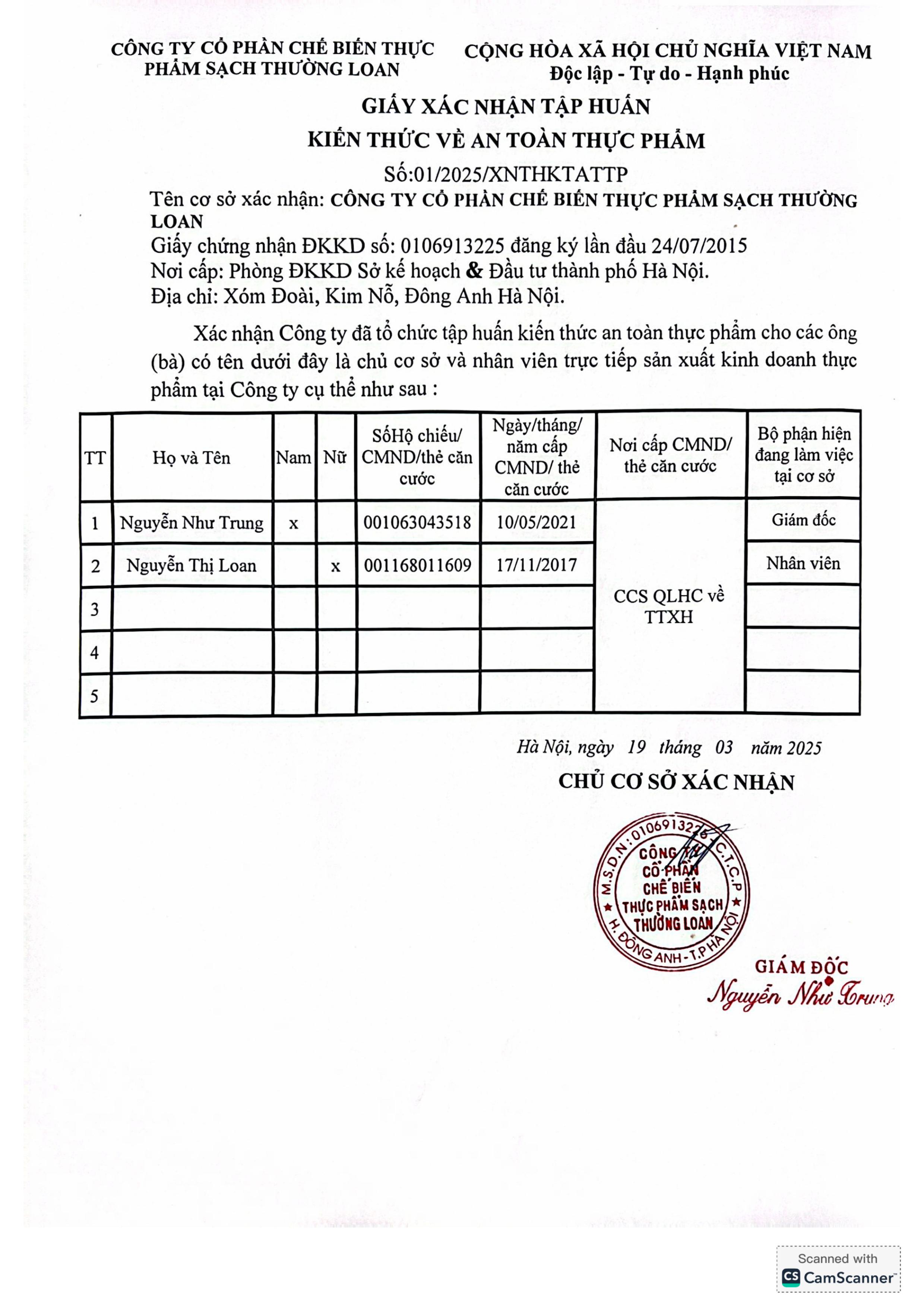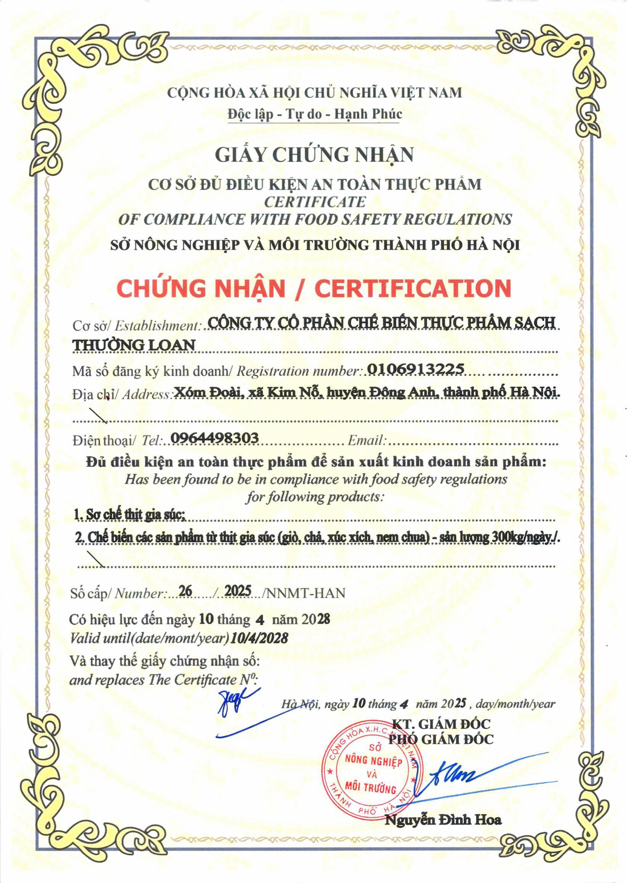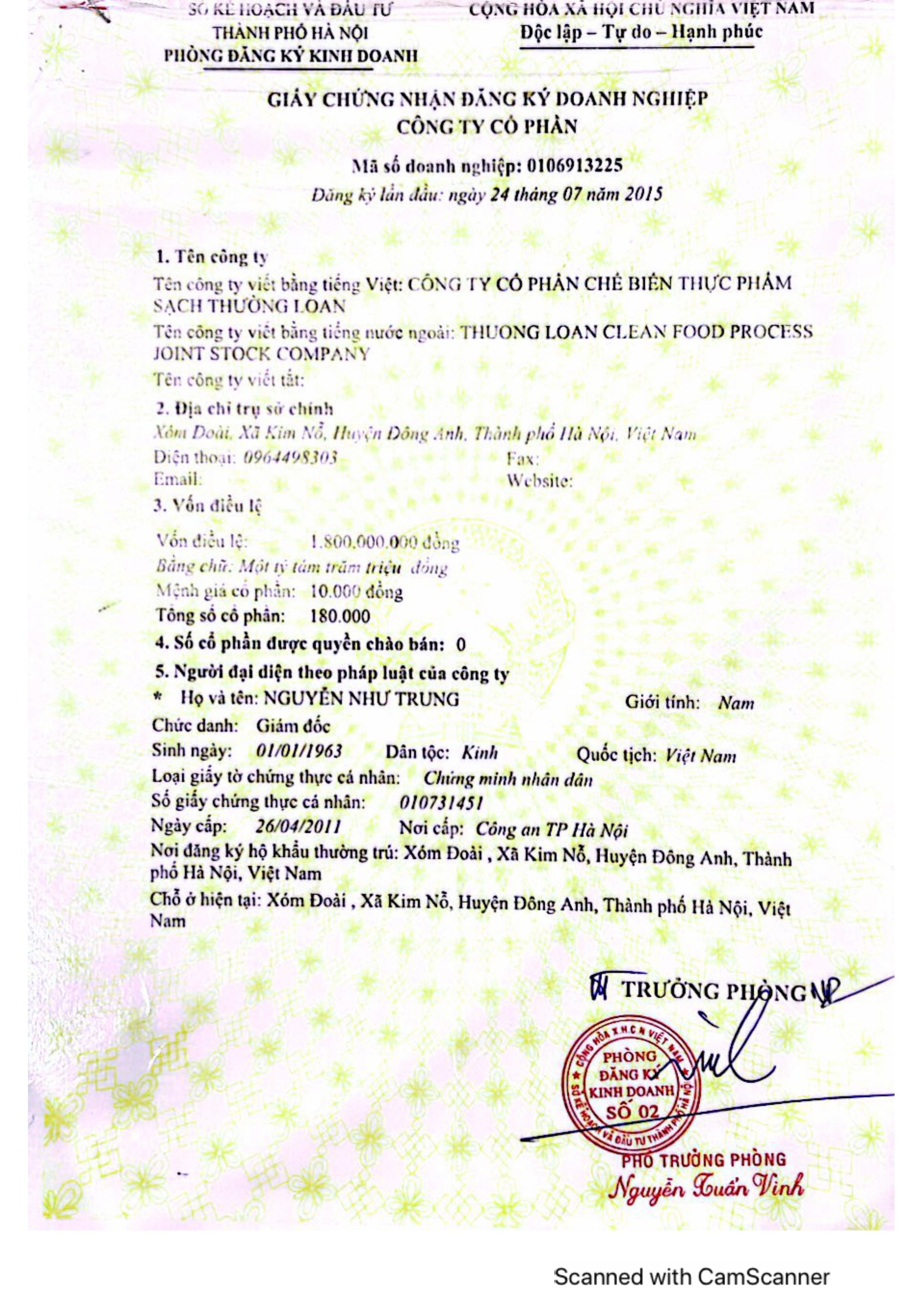 Tên đơn vị/nhà sản xuất: Công ty cổ phần chế biến thực phẩm sạch Thường Loan
