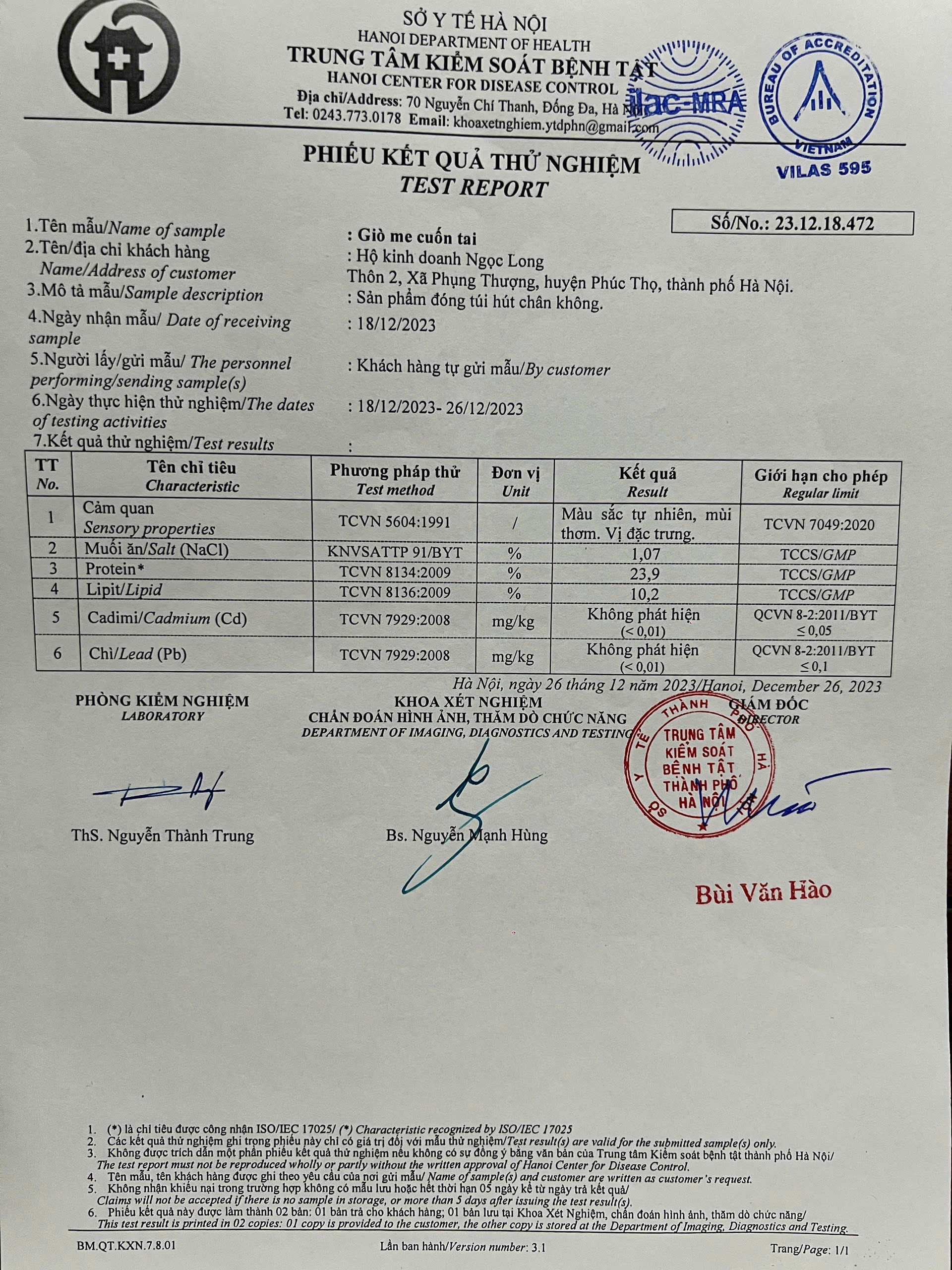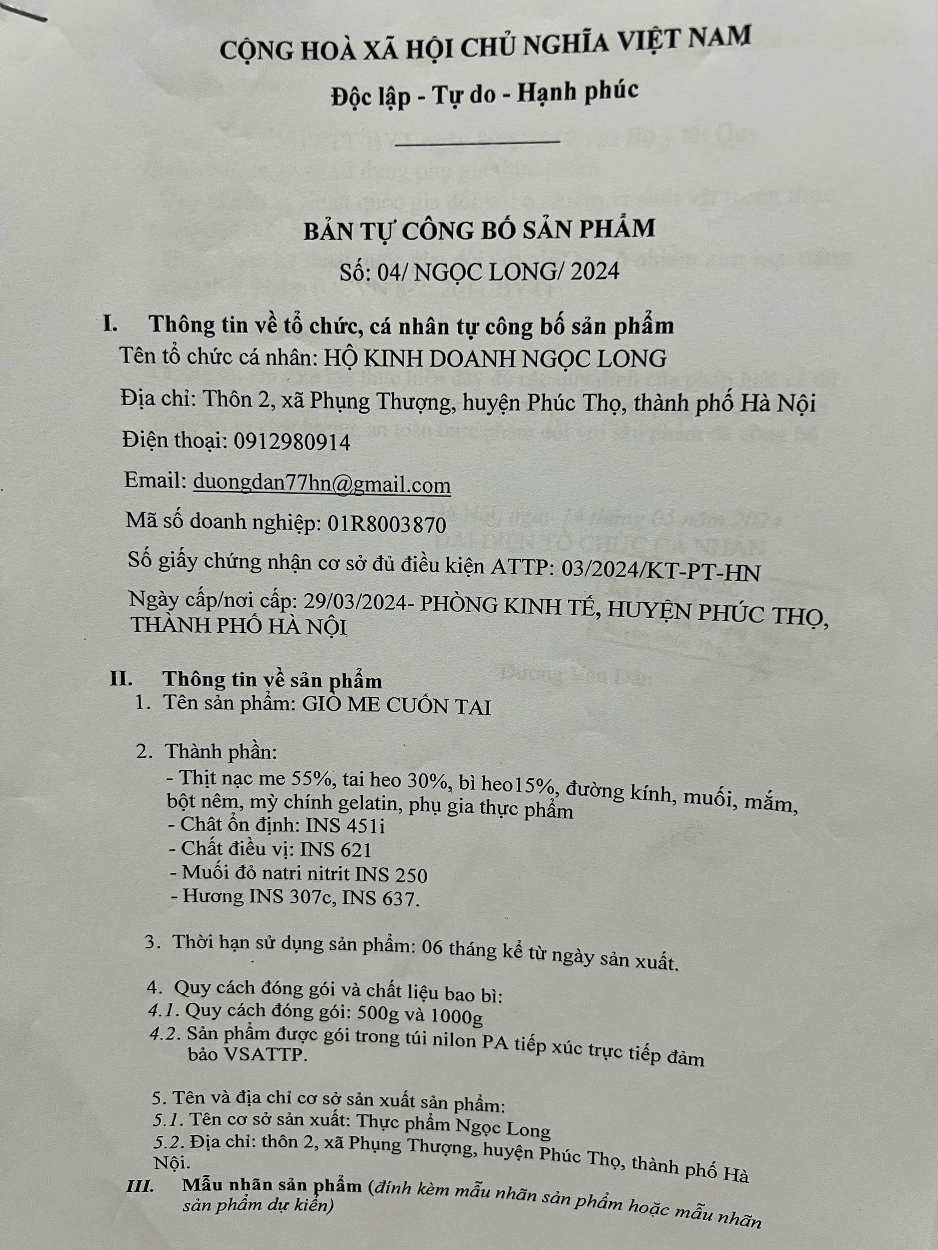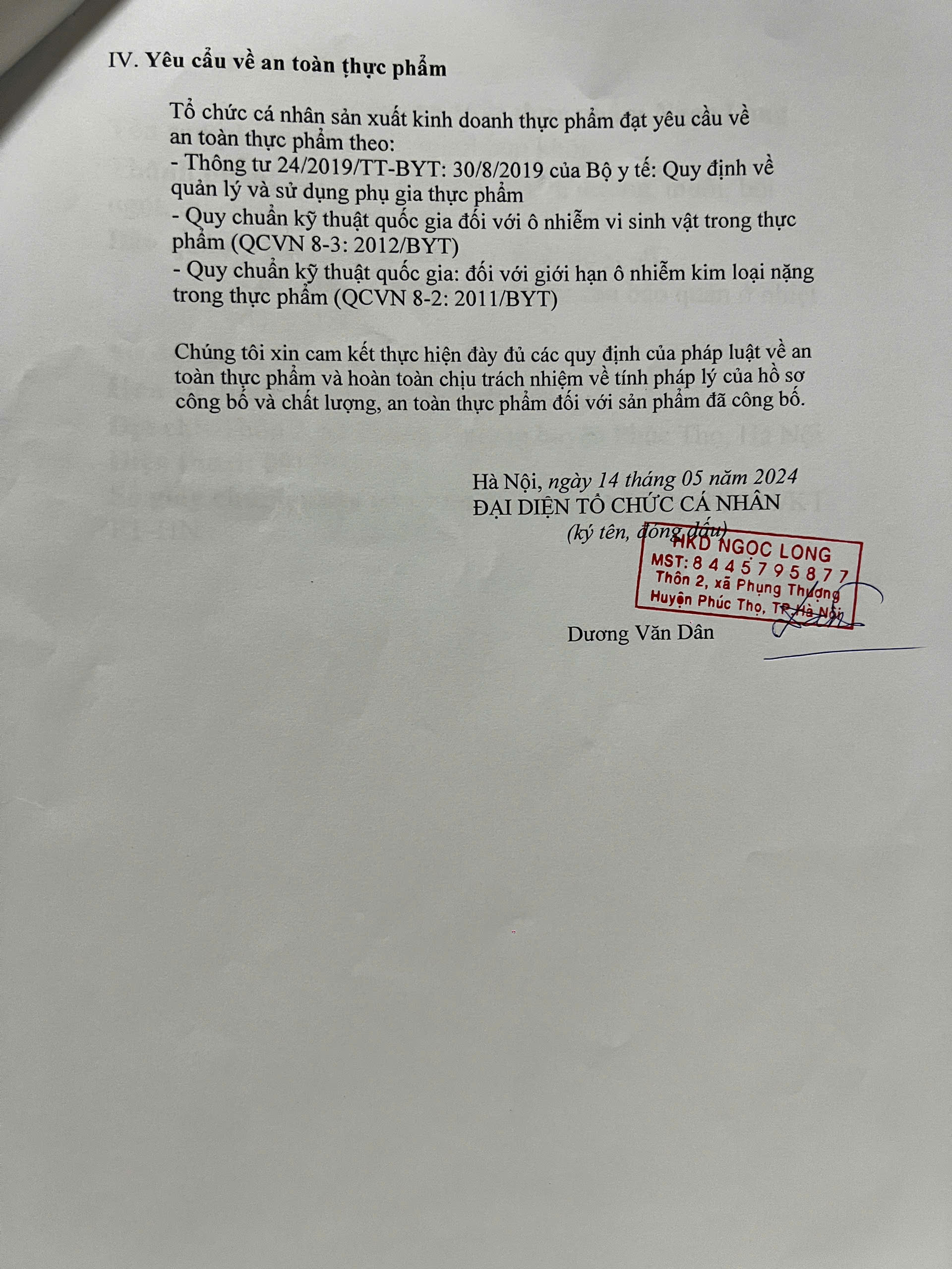Tên đơn vị/nhà sản xuất: Hộ kinh doanh Ngọc Long