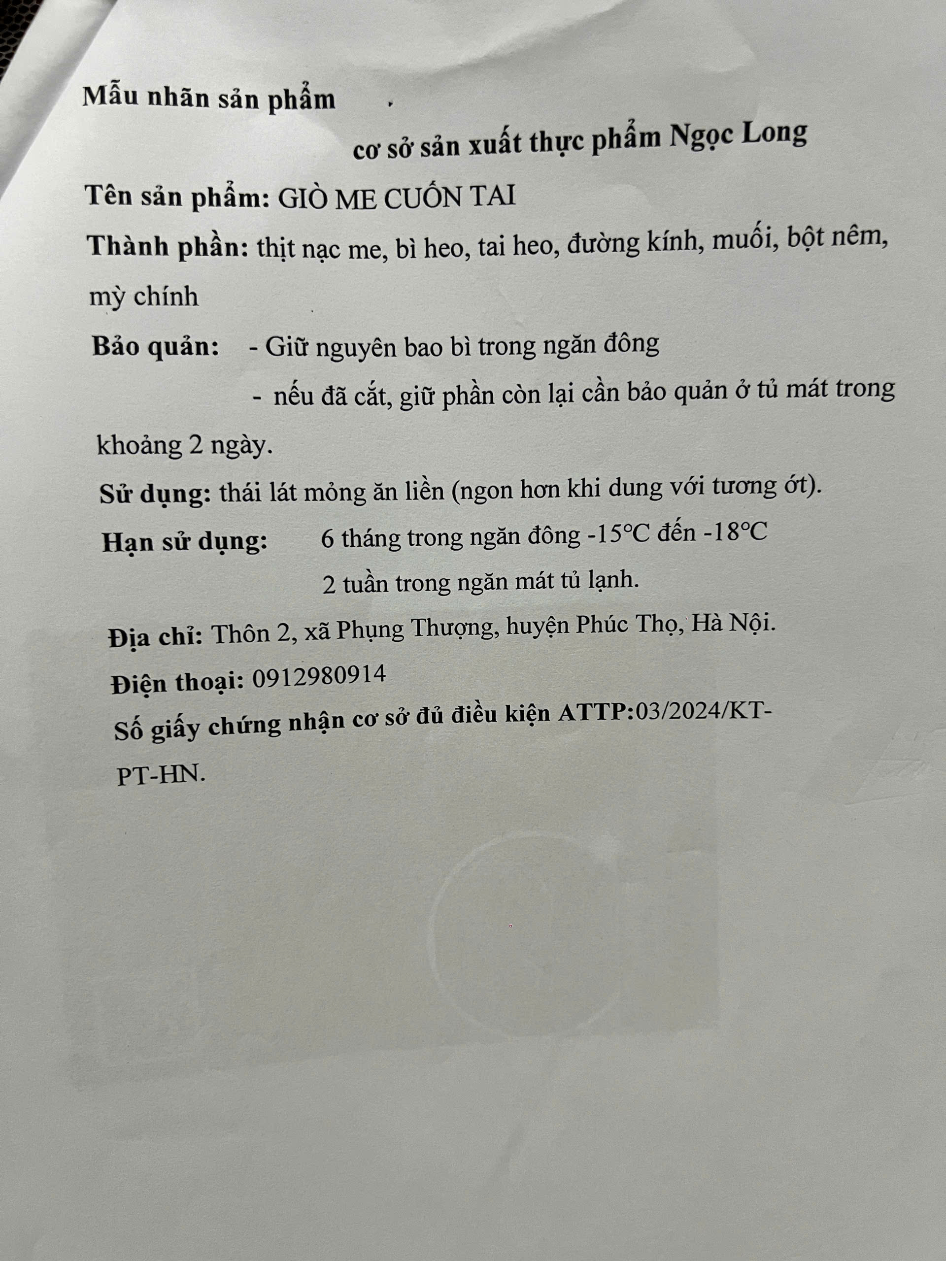 - Tên sản phẩm: Giò me cuốn tai - (Cá thể: )