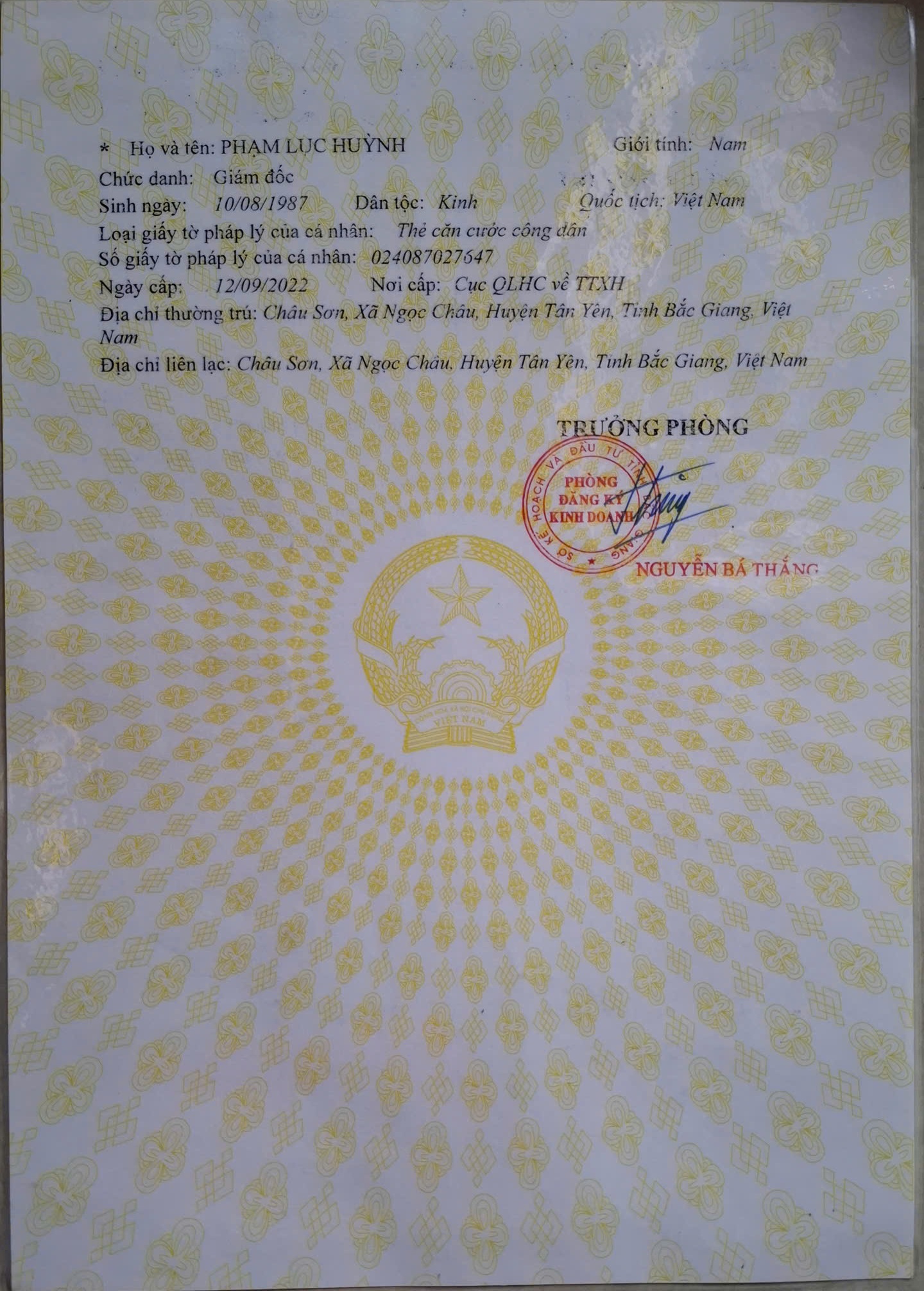 Địa chỉ: Thôn Châu Sơn, Xã Ngọc Thiện, Tỉnh Bắc Ninh