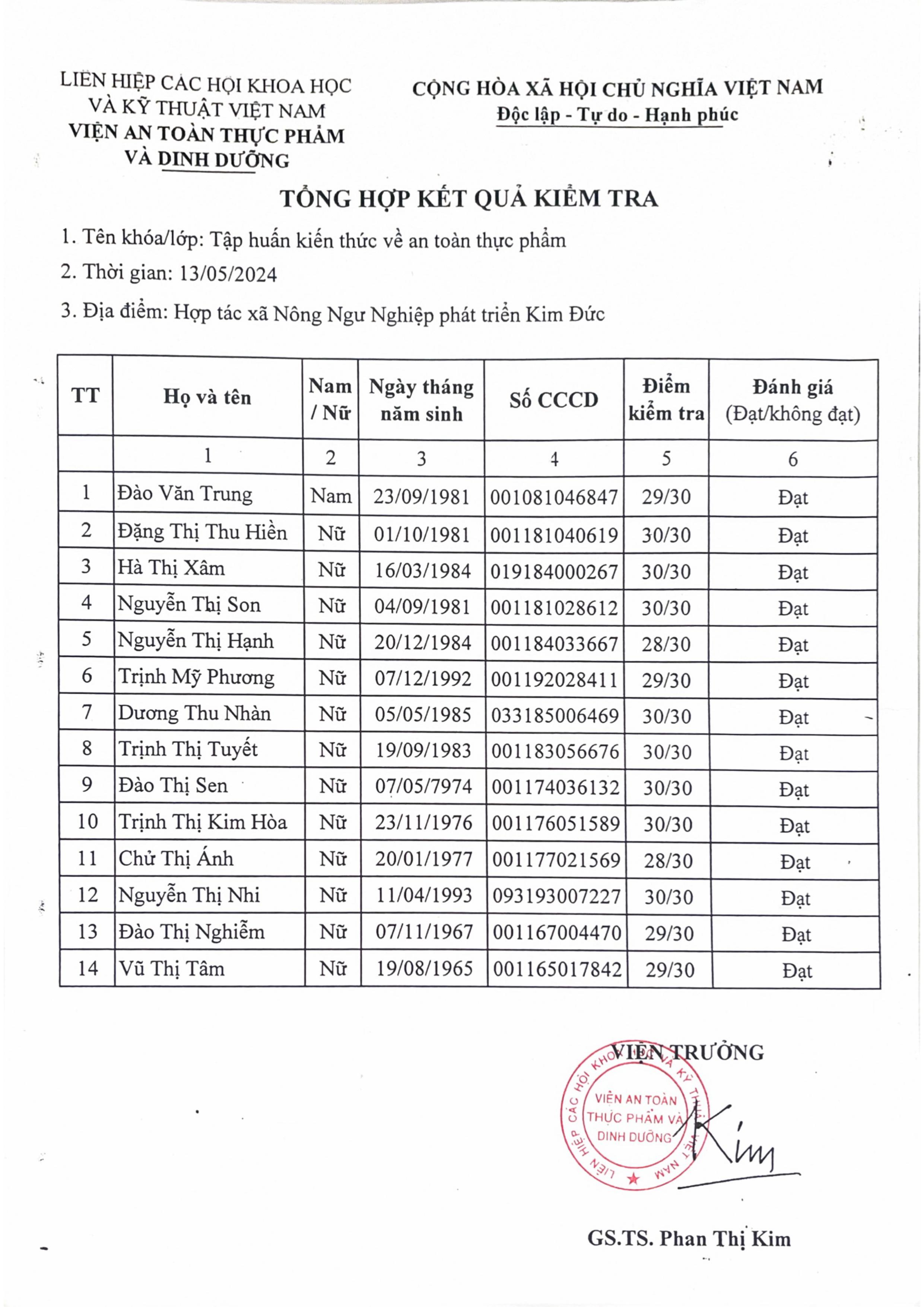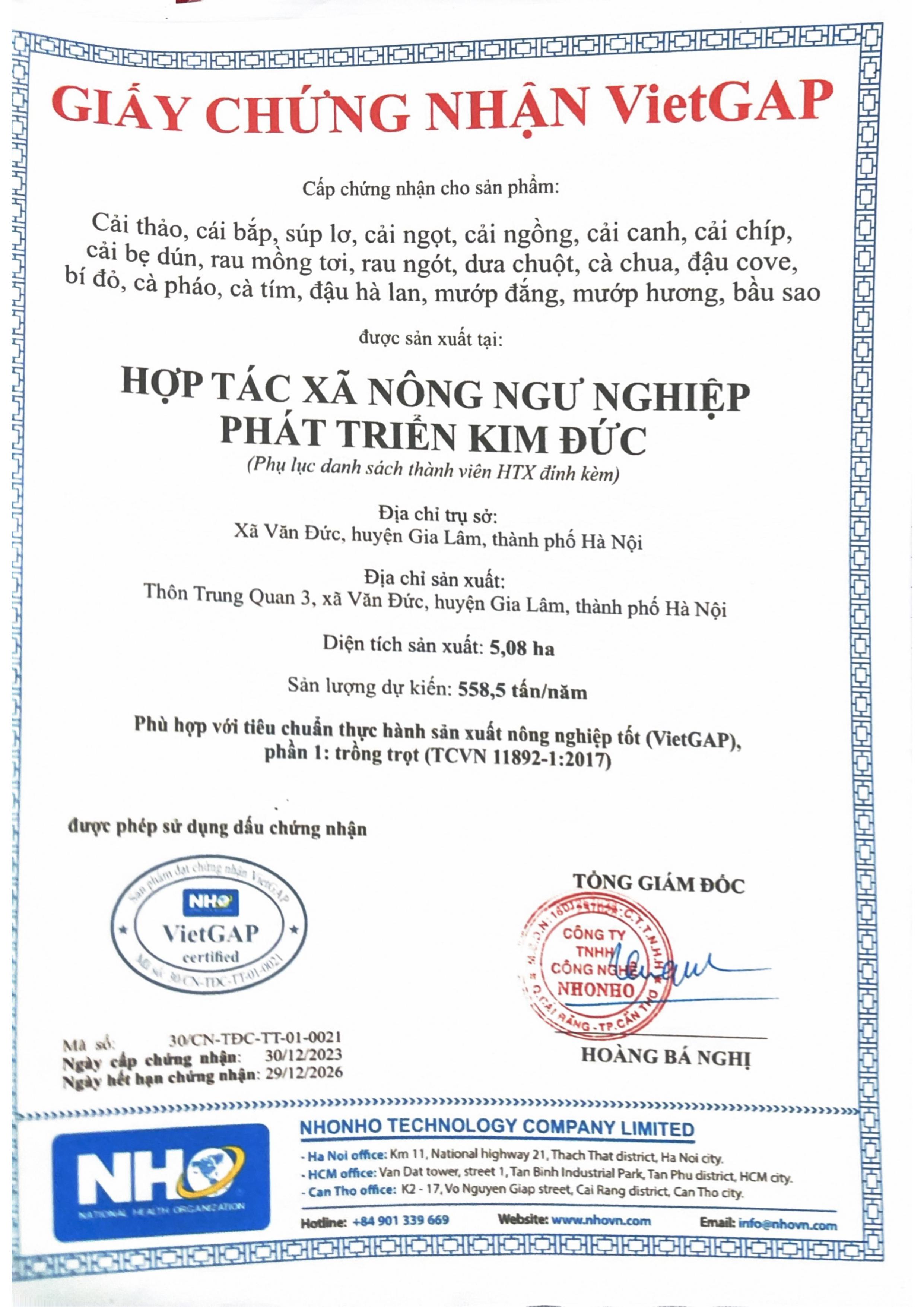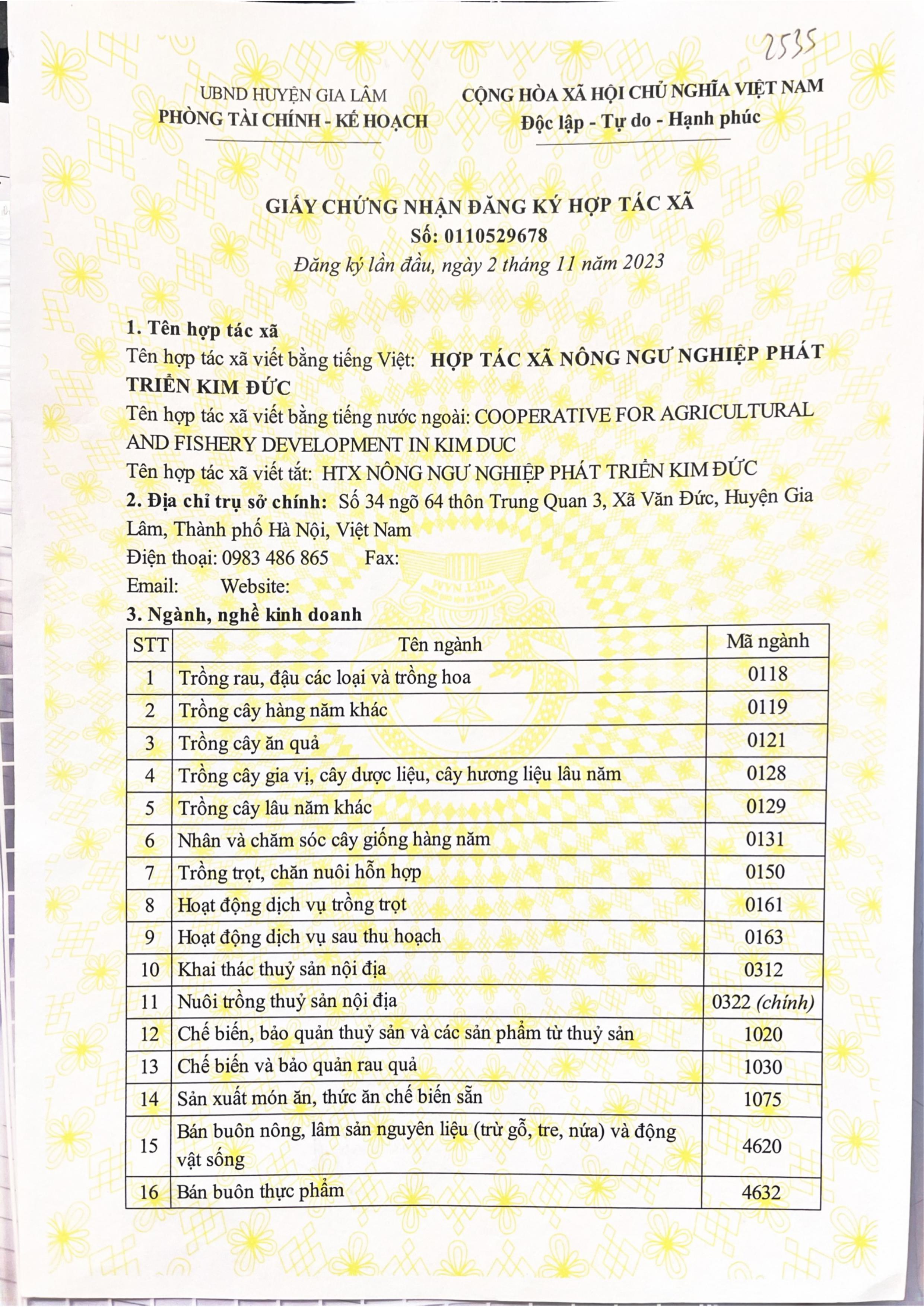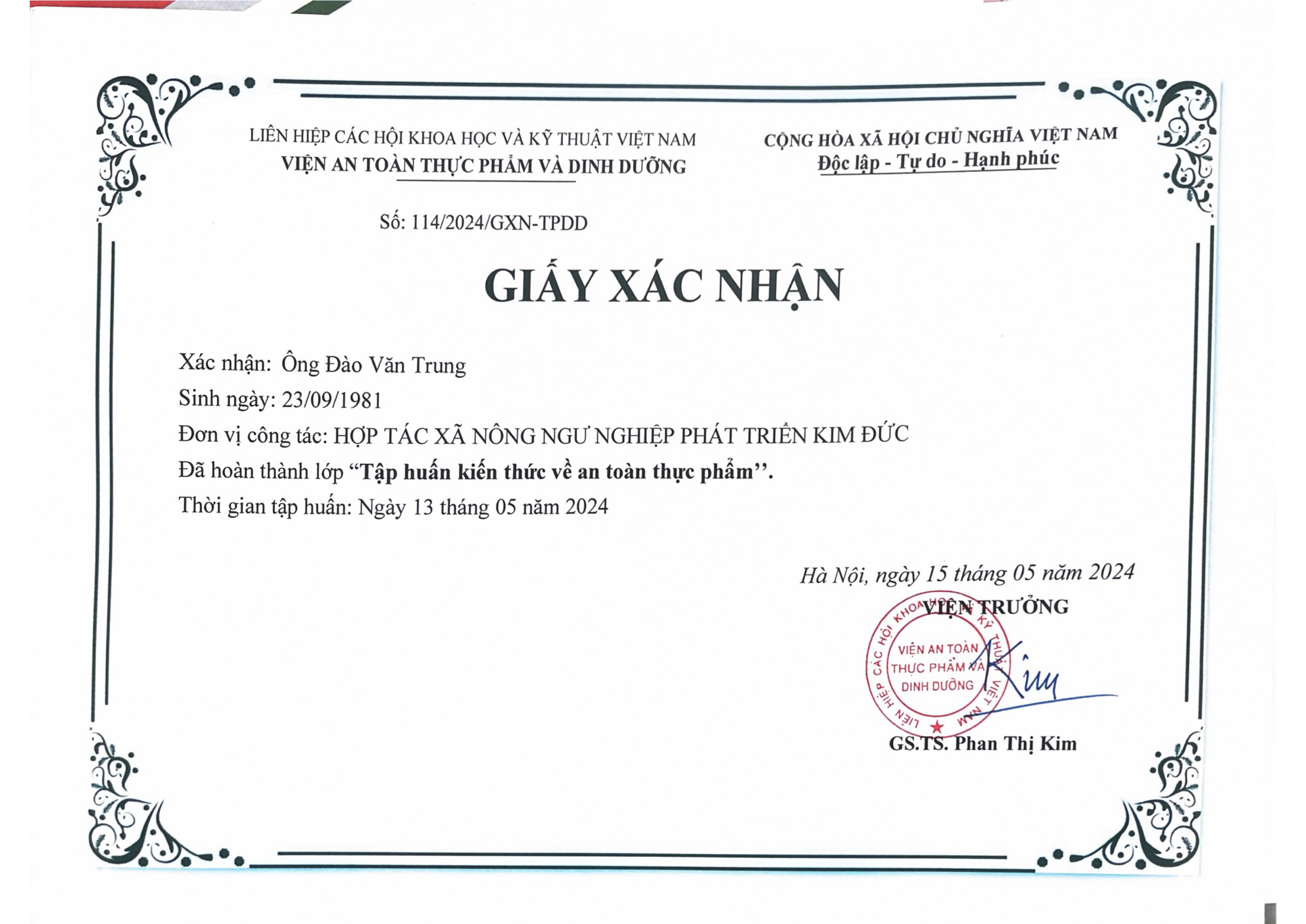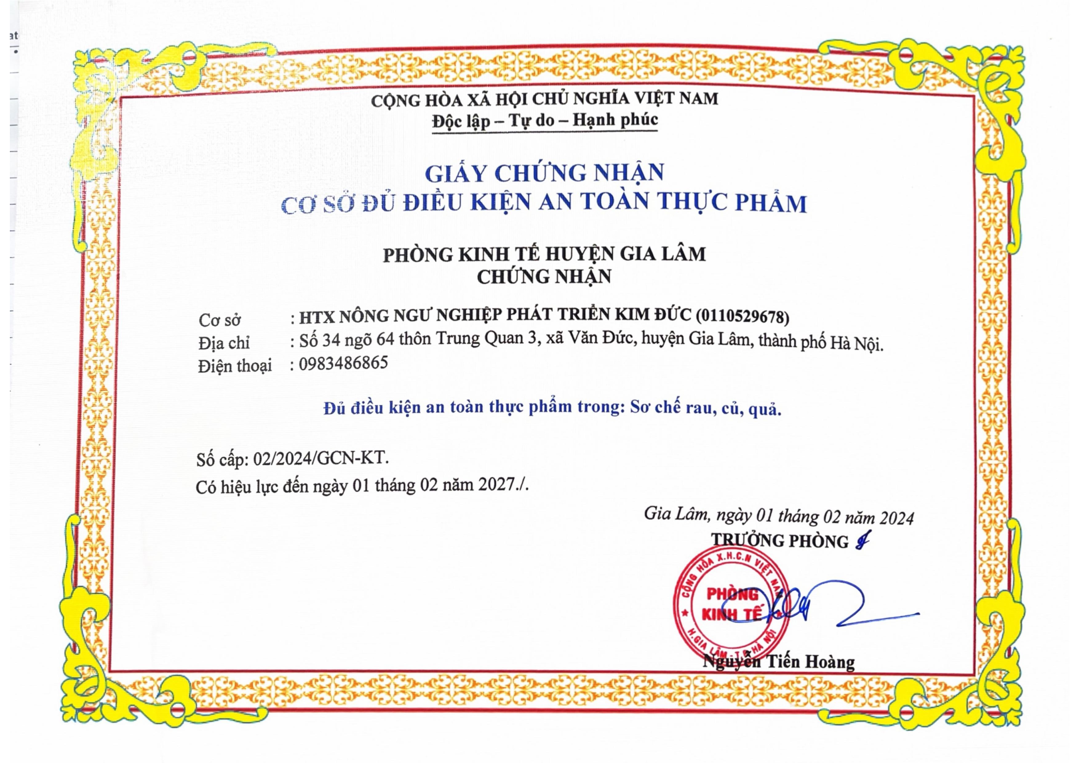 Tên đơn vị/nhà sản xuất: Hợp tác xã nông ngư nghiệp phát triển Kim Đức
