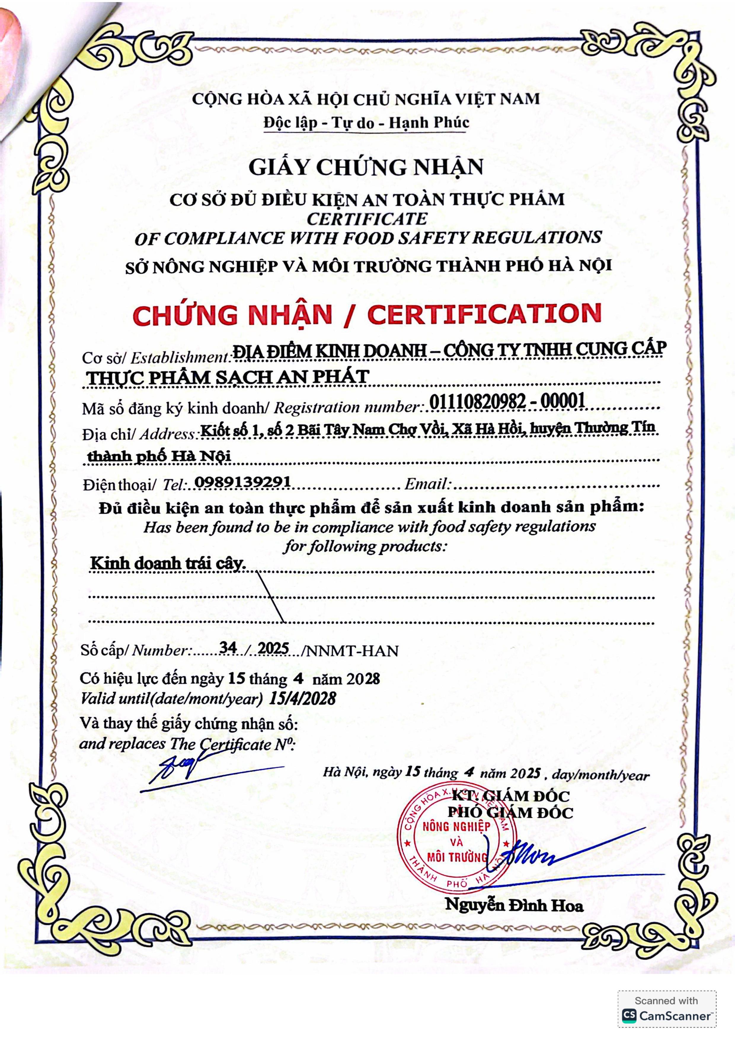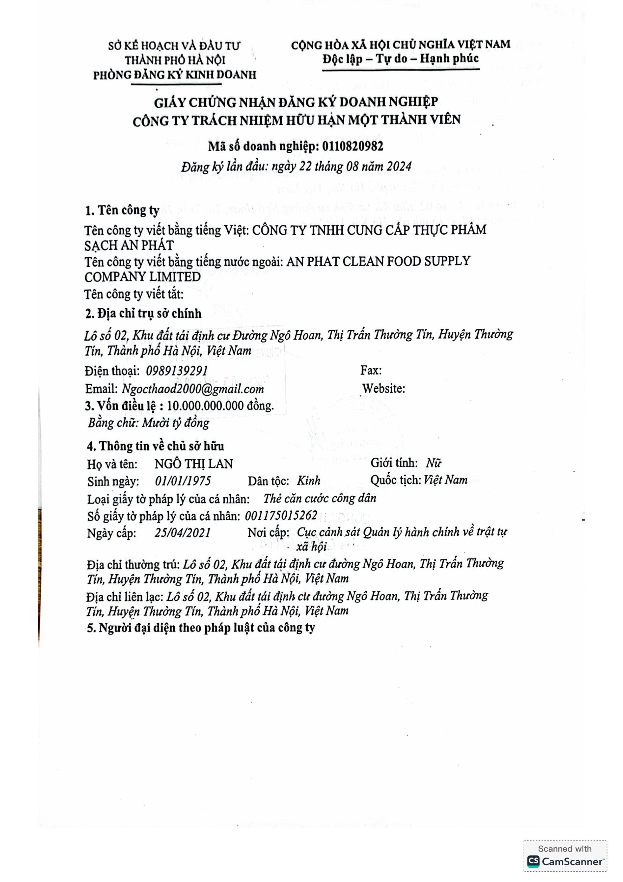 Tên đơn vị/nhà sản xuất: Công ty TNHH cung cấp thực phẩm sạch An Phát