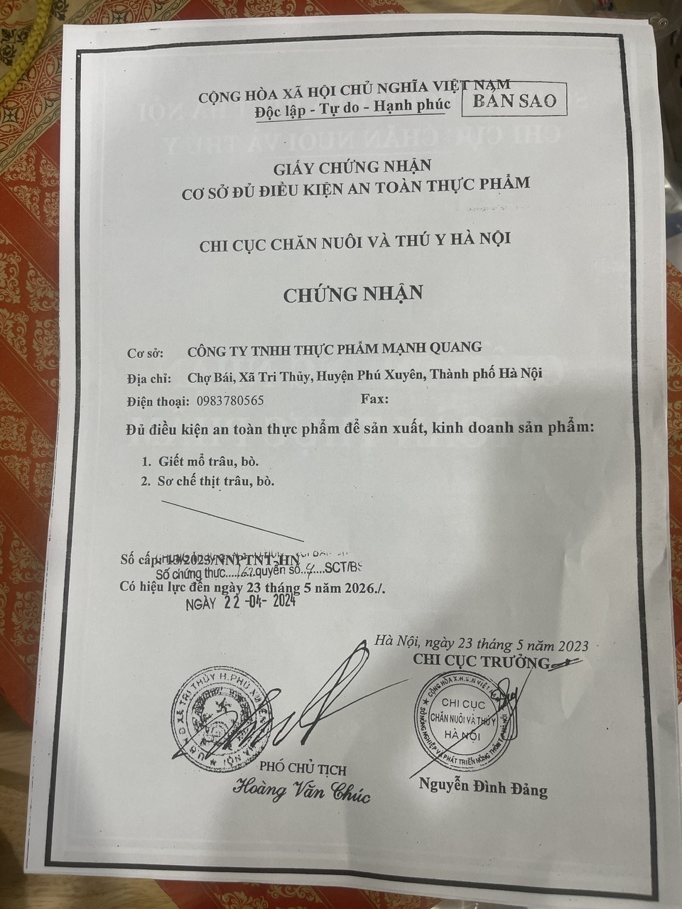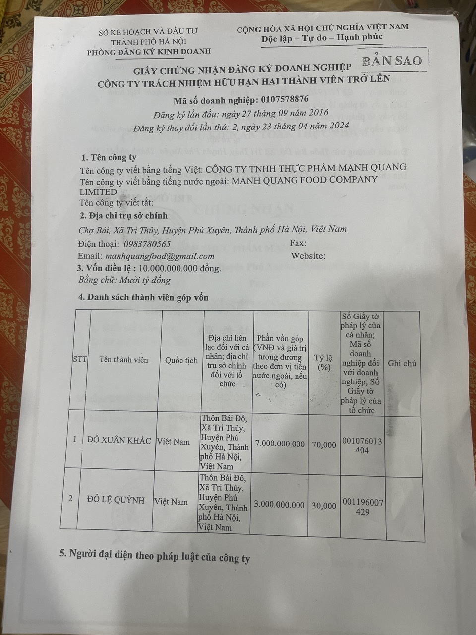 Tên đơn vị/nhà sản xuất: Công ty TNHH thực phẩm Mạnh Quang