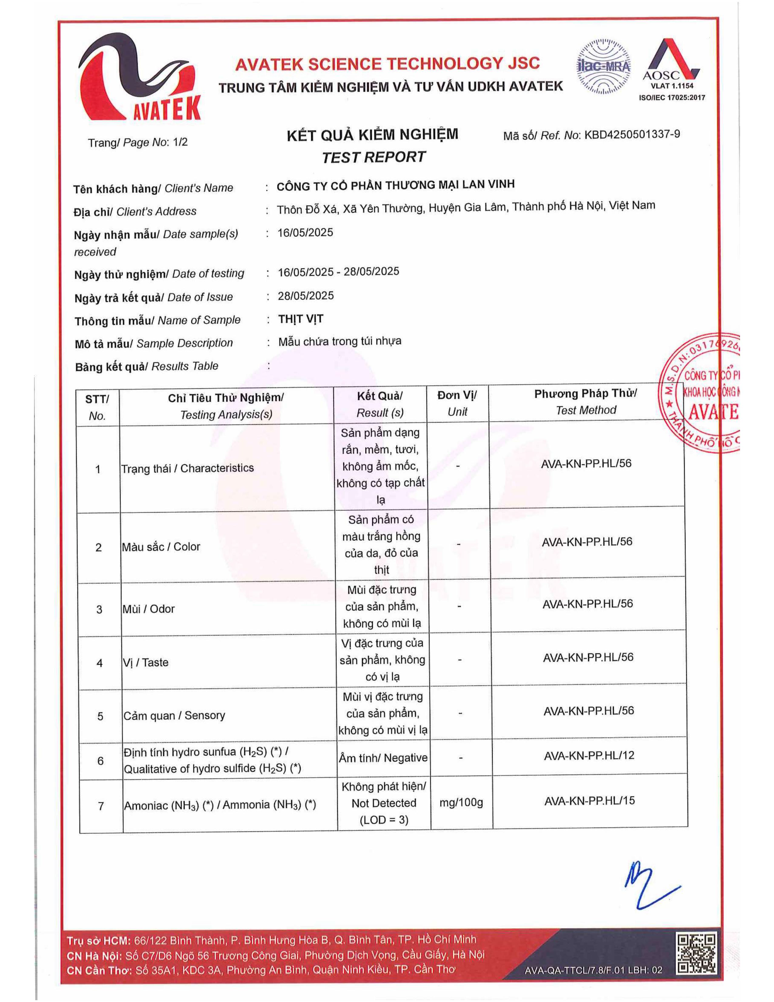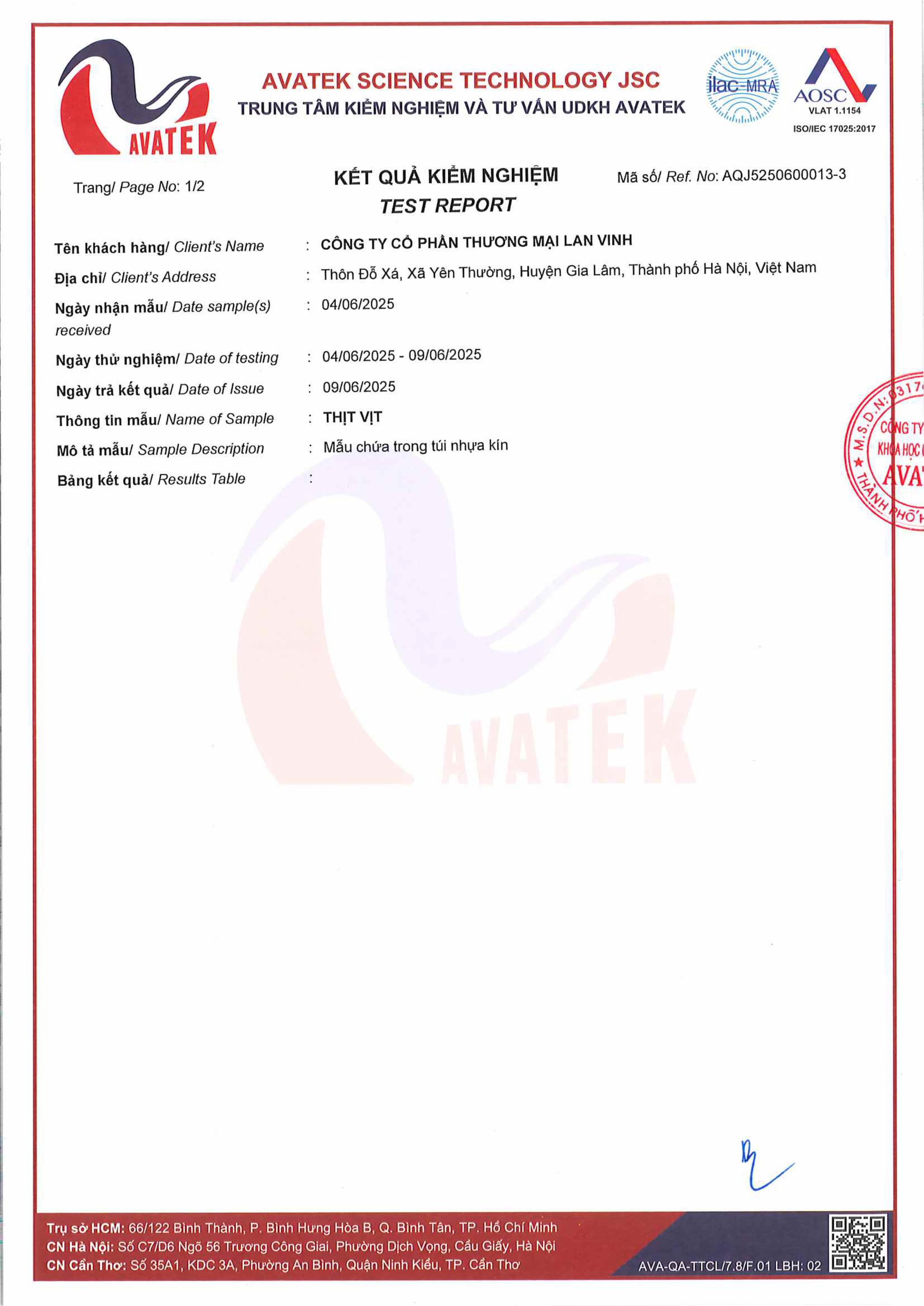 Tên đơn vị/nhà sản xuất: Công ty cổ phần thương mại Lan Vinh
