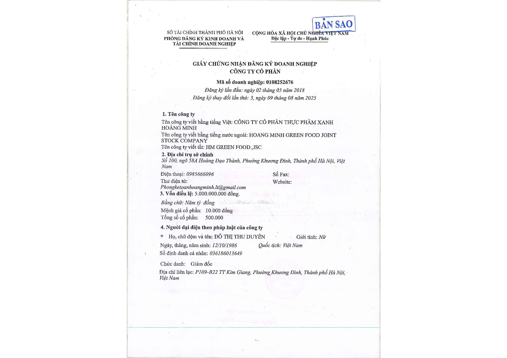 ty cổ phần thực phẩm xanh Hoàng Minh là một doanh nghiệp được thành lập theo: