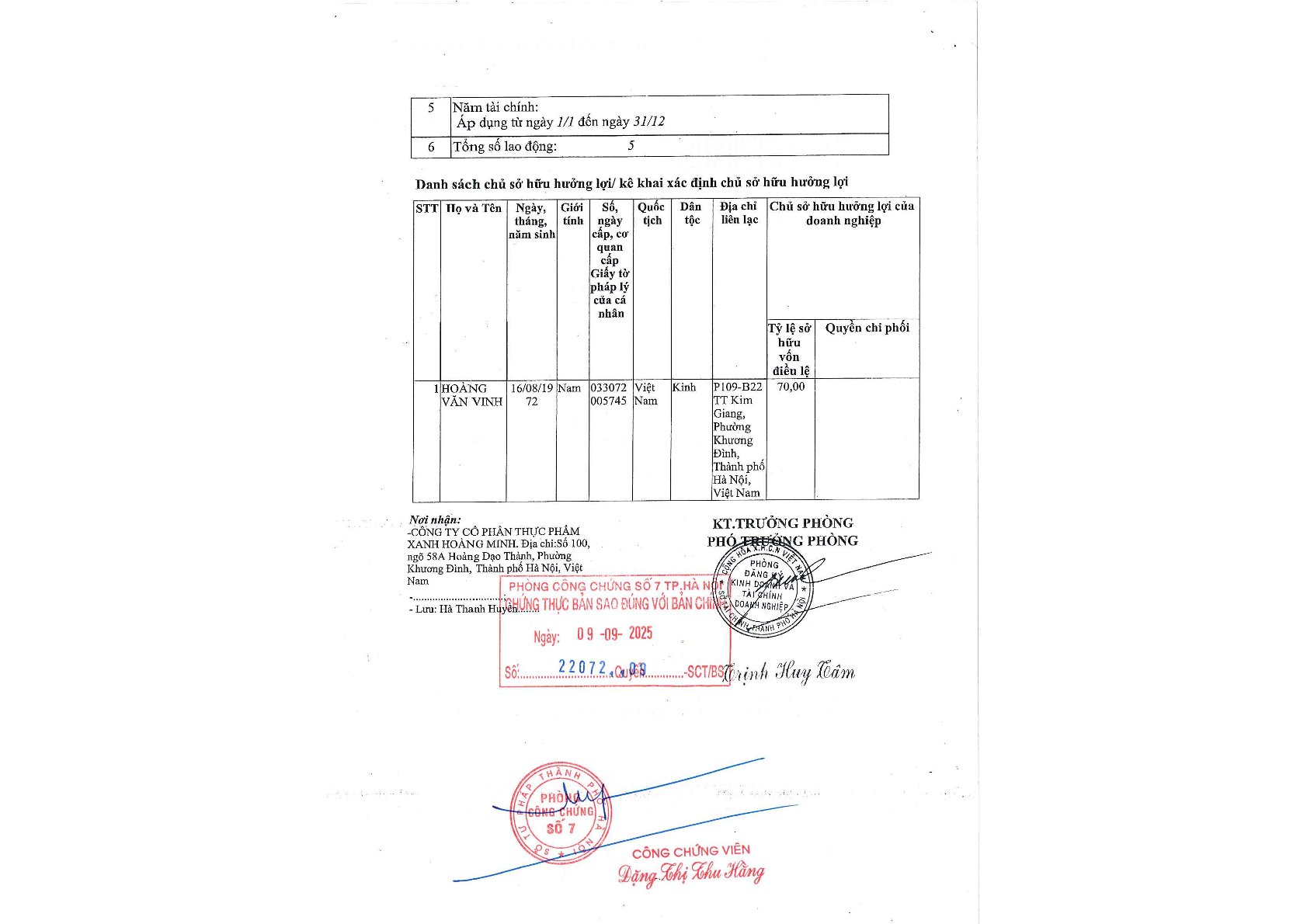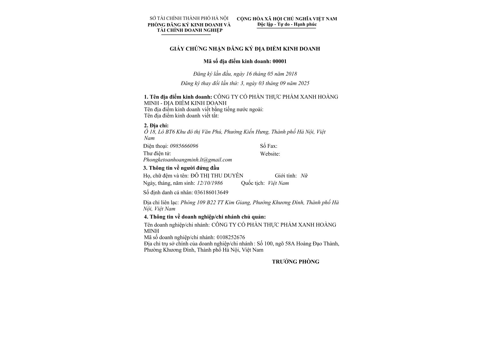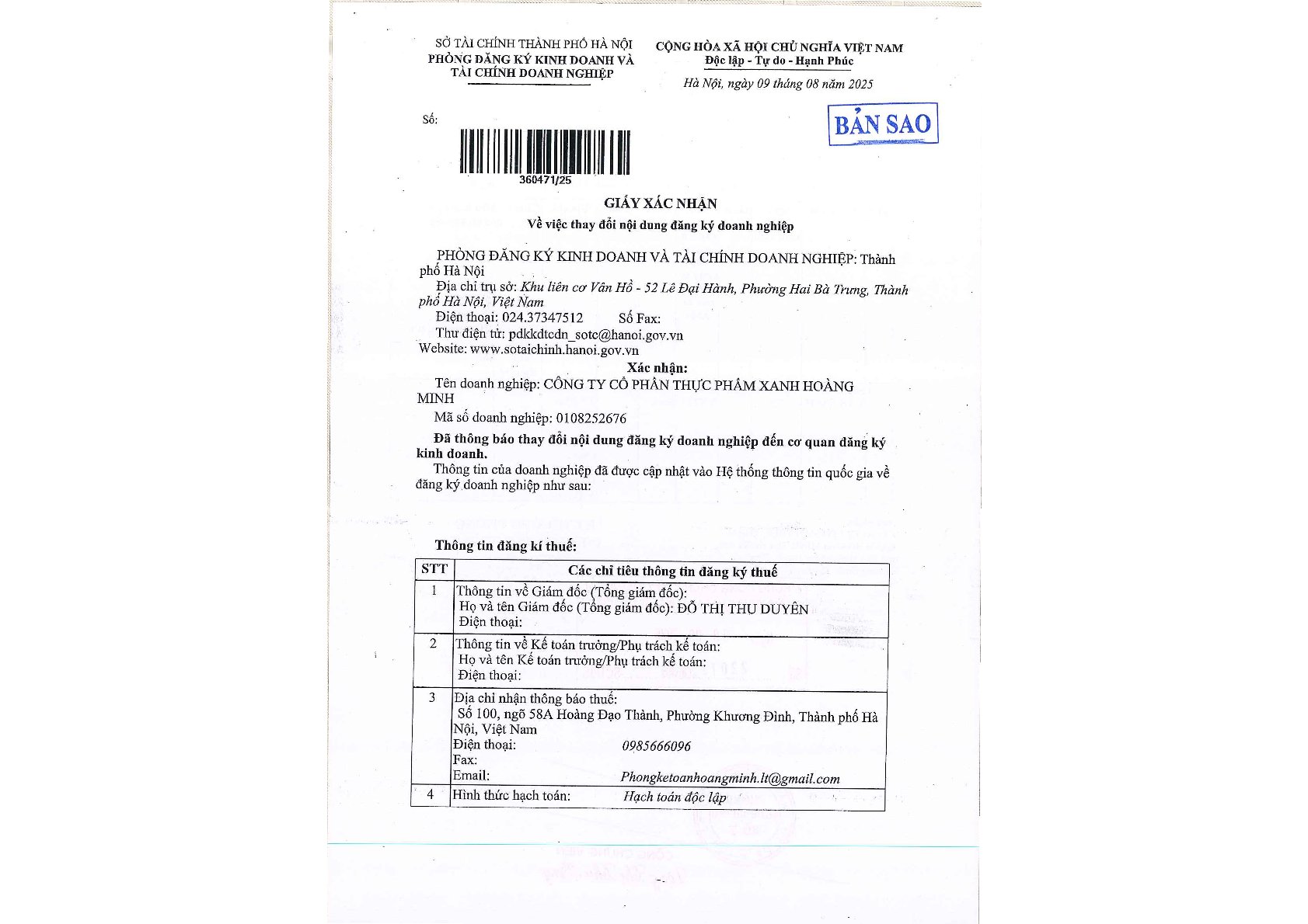 Tên giao dịch: Công ty cổ phần thực phẩm xanh Hoàng