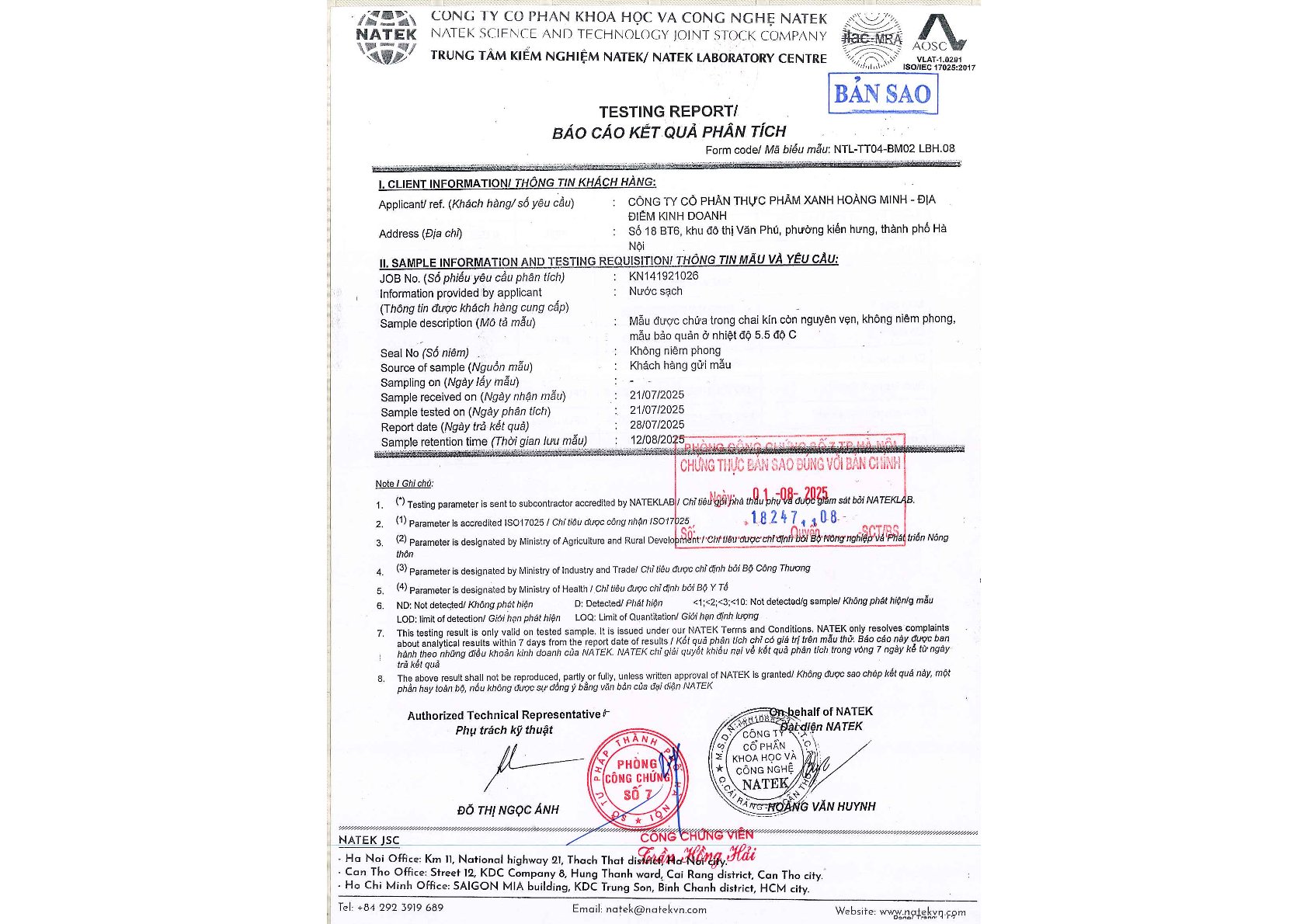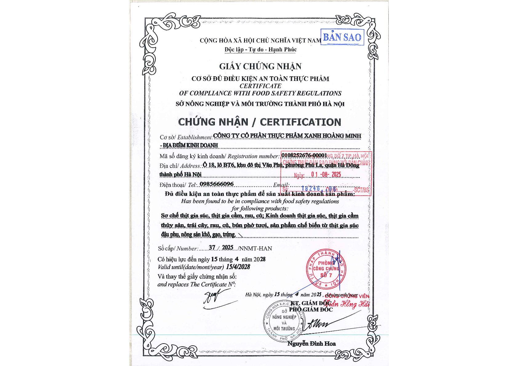 Tên đơn vị/nhà sản xuất: Công ty cổ phần thực phẩm xanh Hoàng Minh