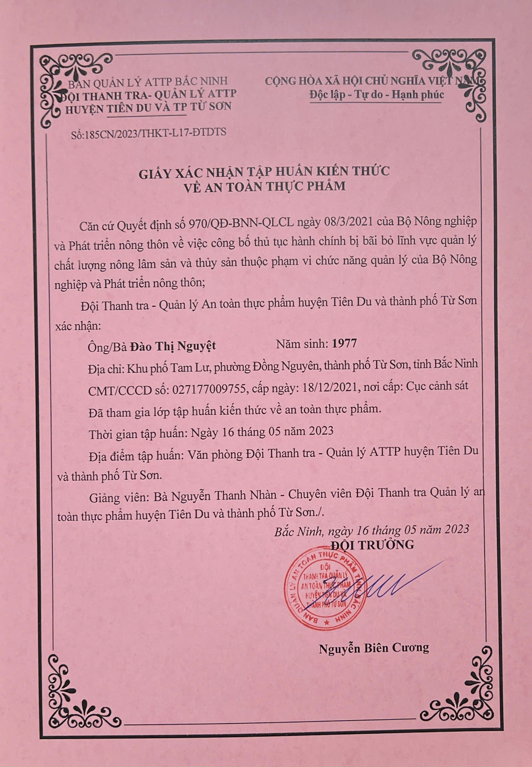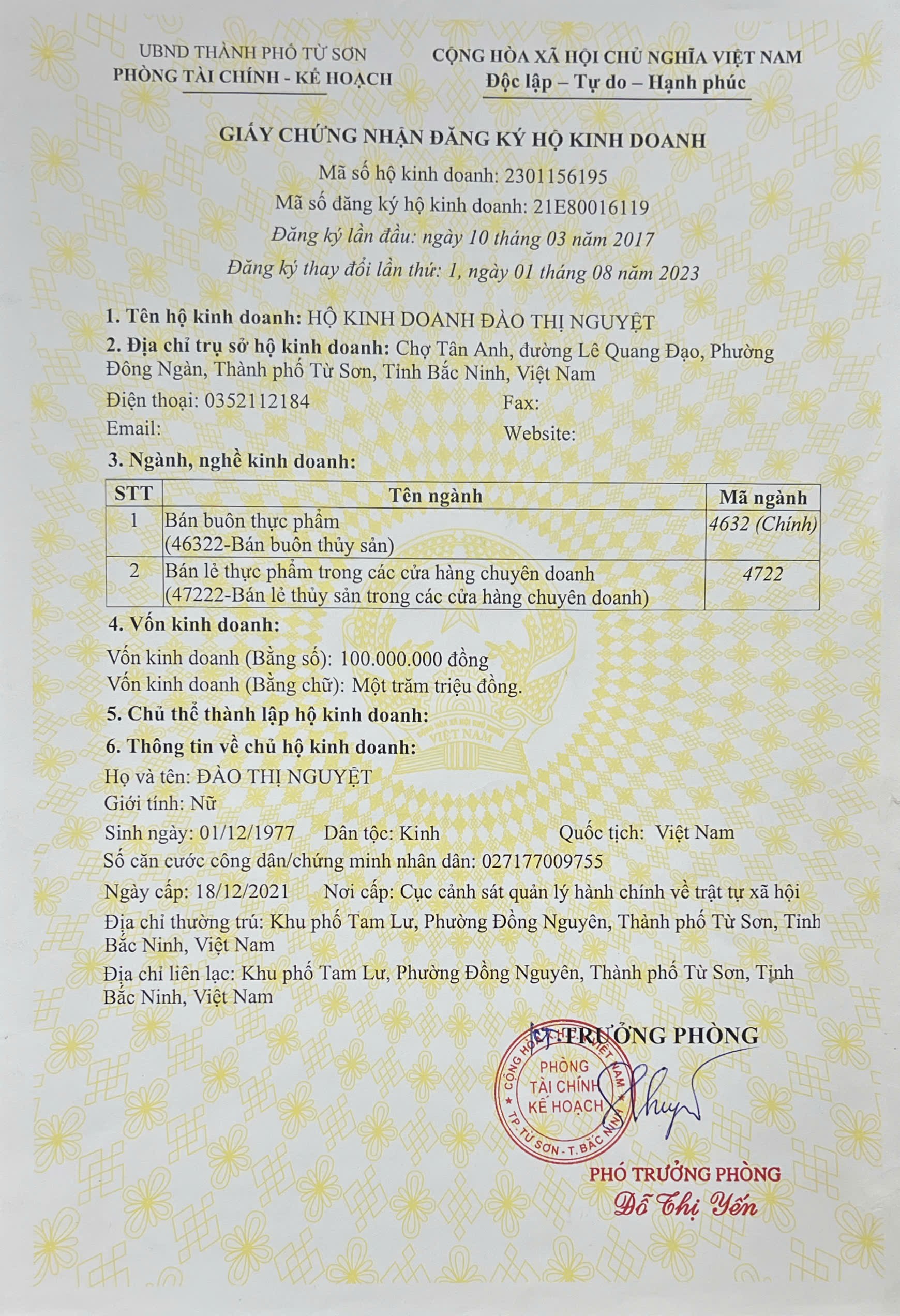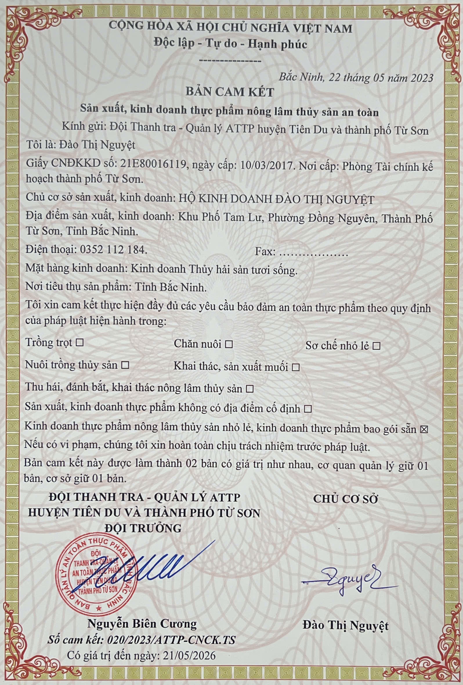 Tên đơn vị/nhà sản xuất: Hộ kinh doanh Đào Thị Nguyệt
