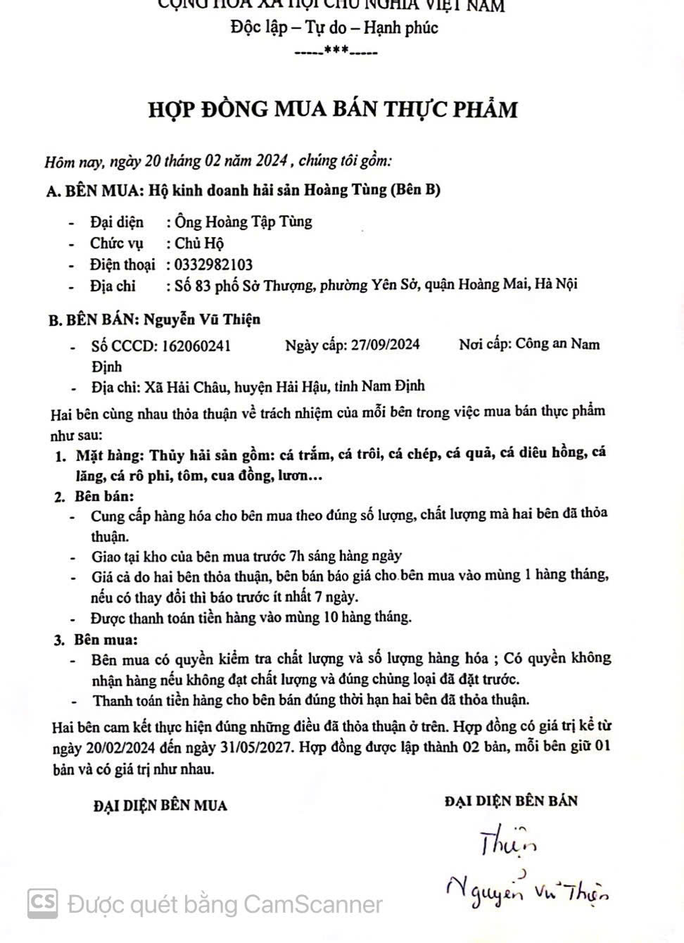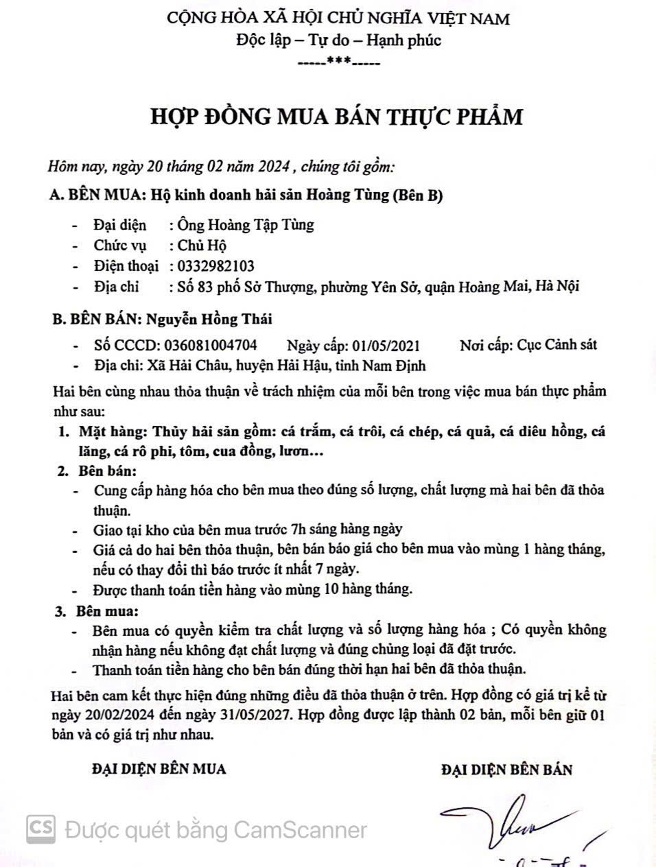Tên đơn vị/nhà sản xuất: Hộ kinh doanh hải sản Hoàng Tùng
