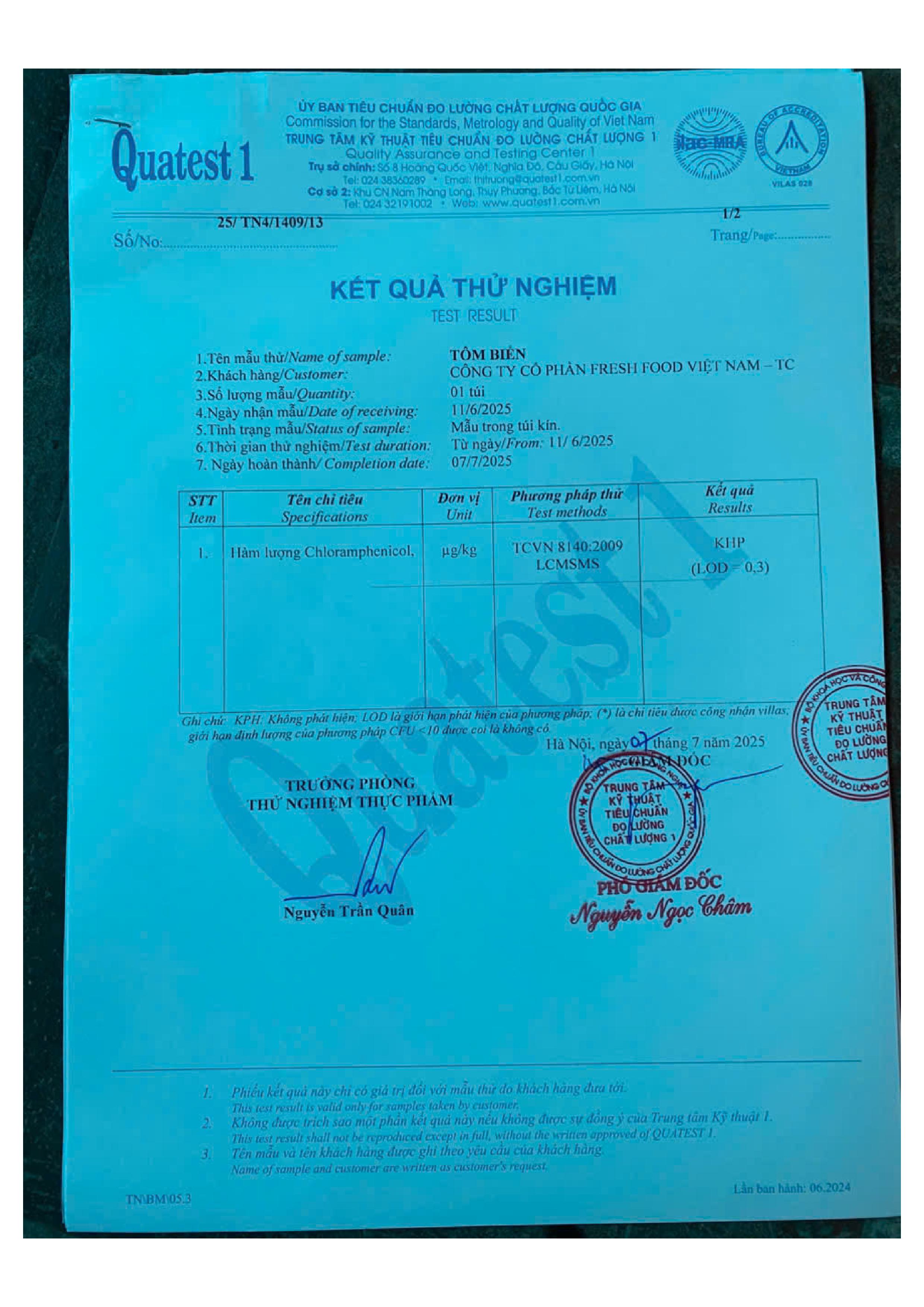 Tên đơn vị/nhà sản xuất: Công ty cổ phần Fresh Food Việt Nam - TC