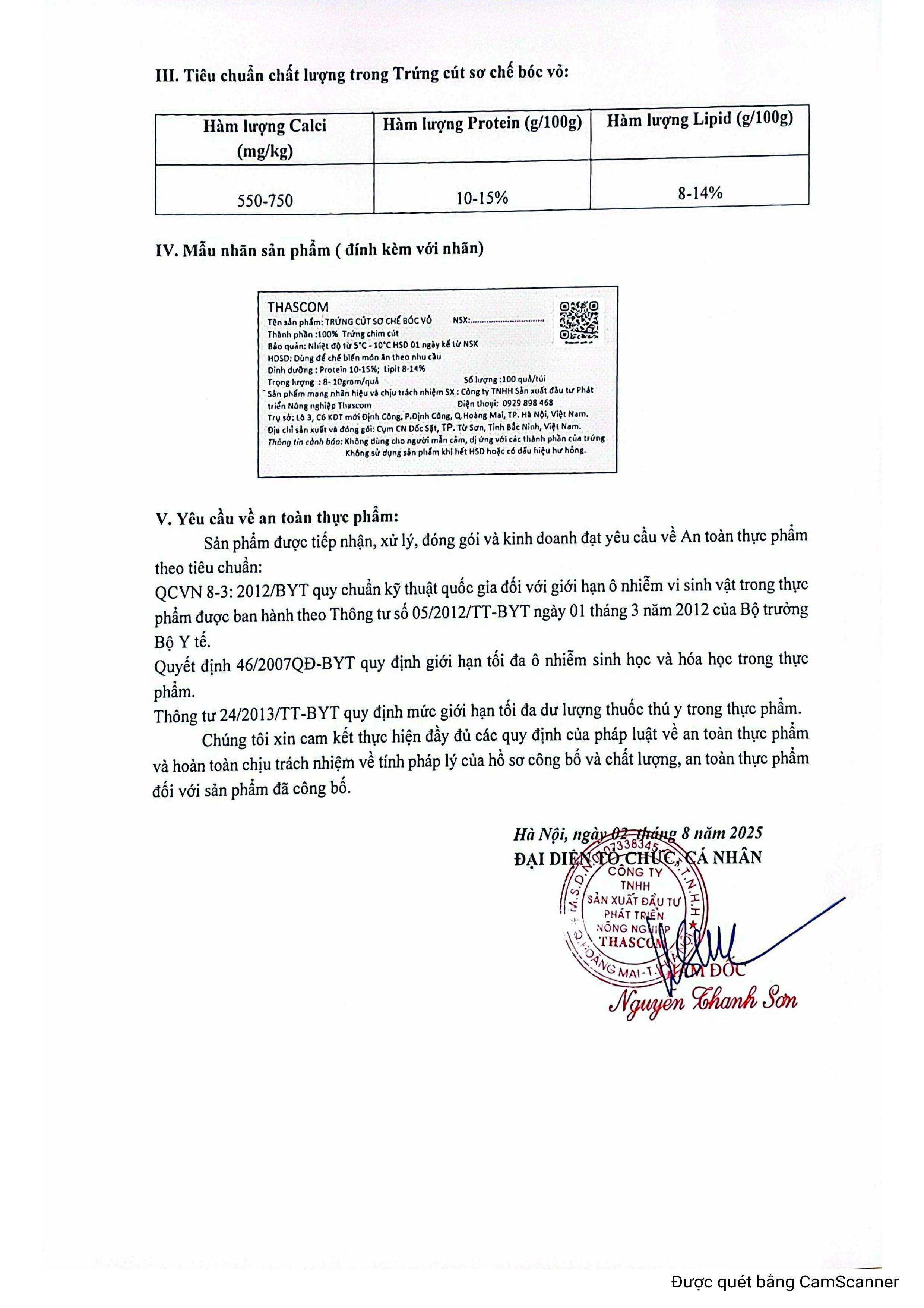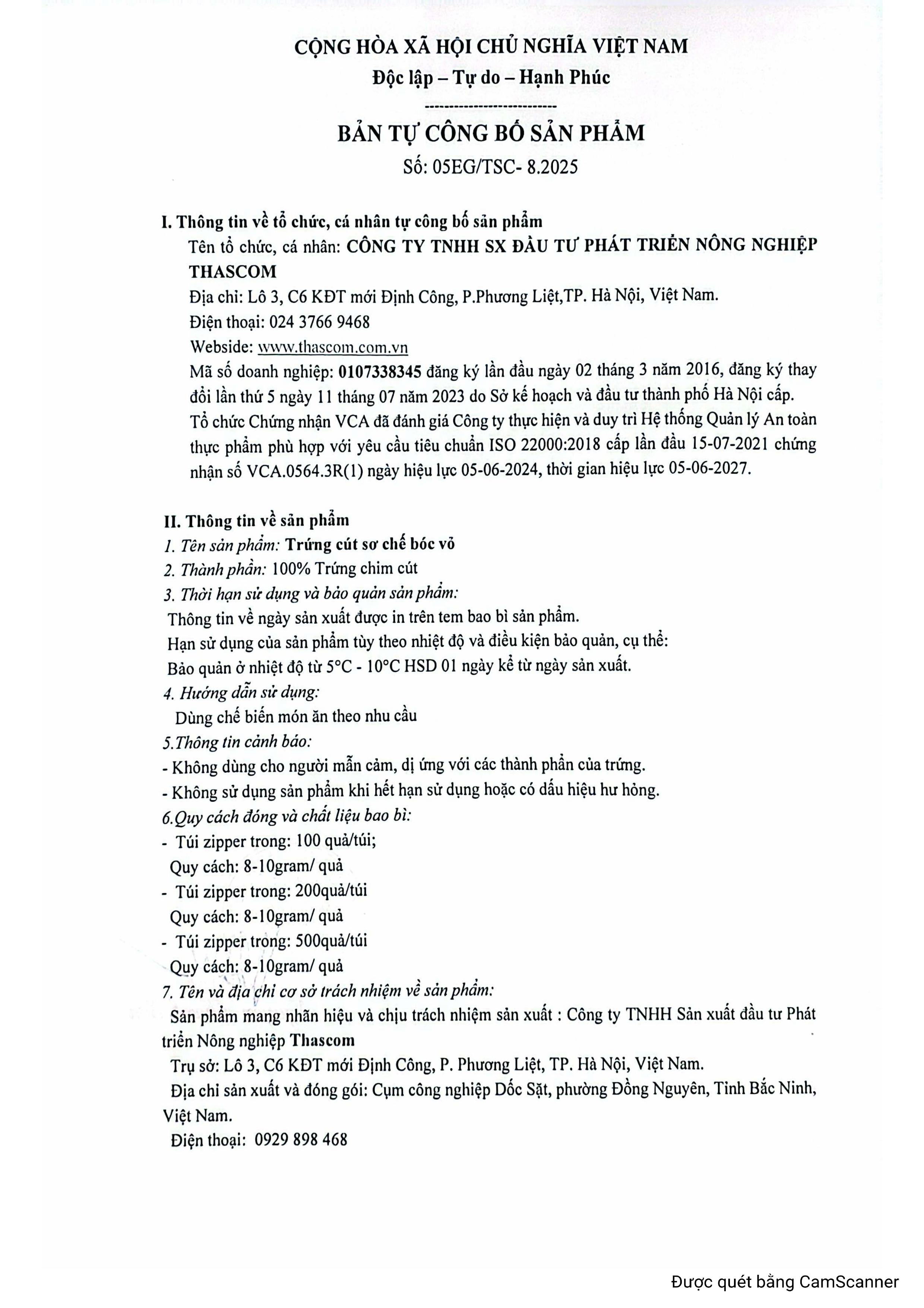 Sản phẩm mang nhãn hiệu và chịu trách nhiệm sản xuất : Công ty TNHH Sản xuất đầu tư Phát triển Nông nghiệp Thascom