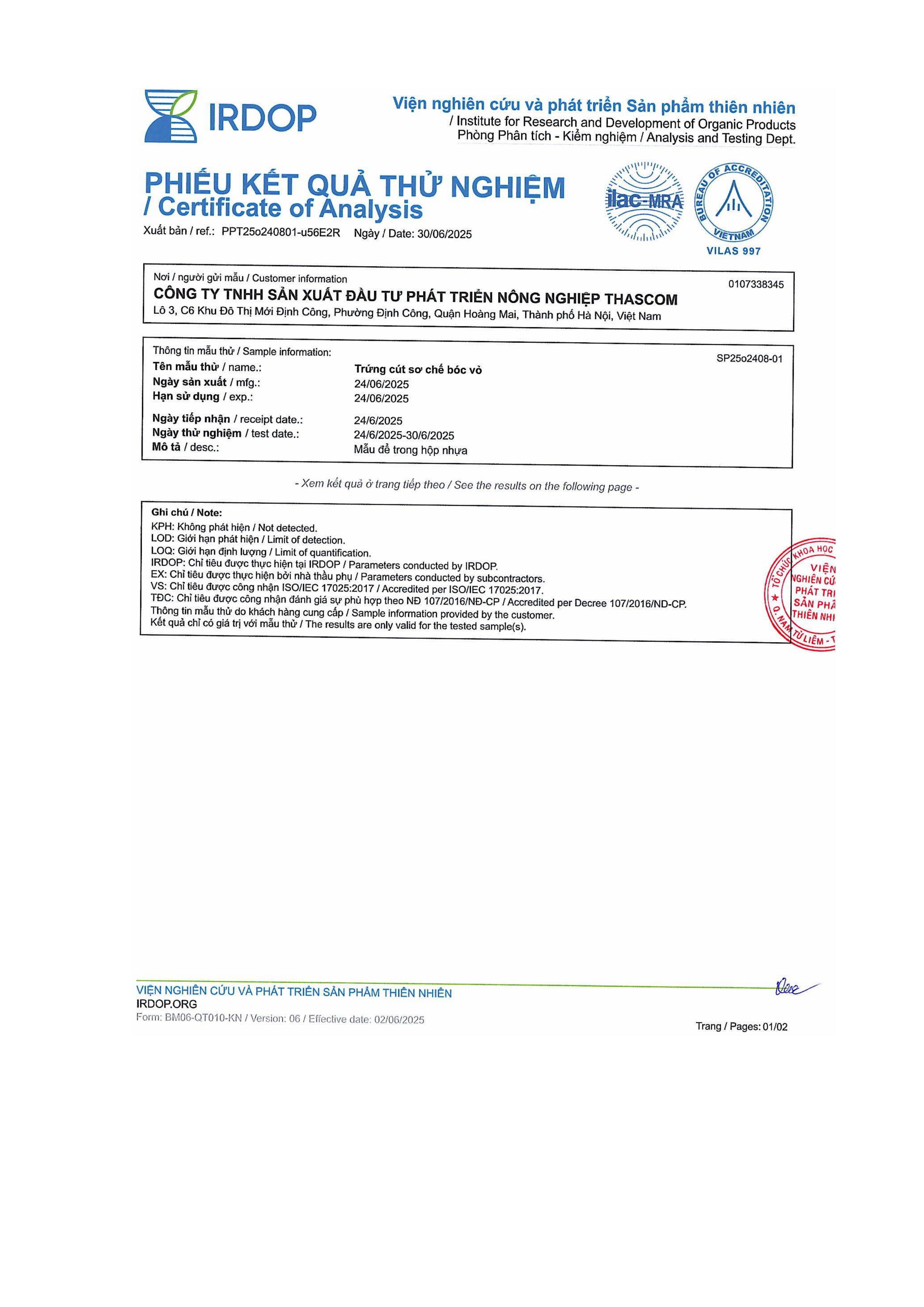 Tên đơn vị/nhà sản xuất: Công ty TNHH sản xuất đầu tư phát triển nông nghiệp THASCOM