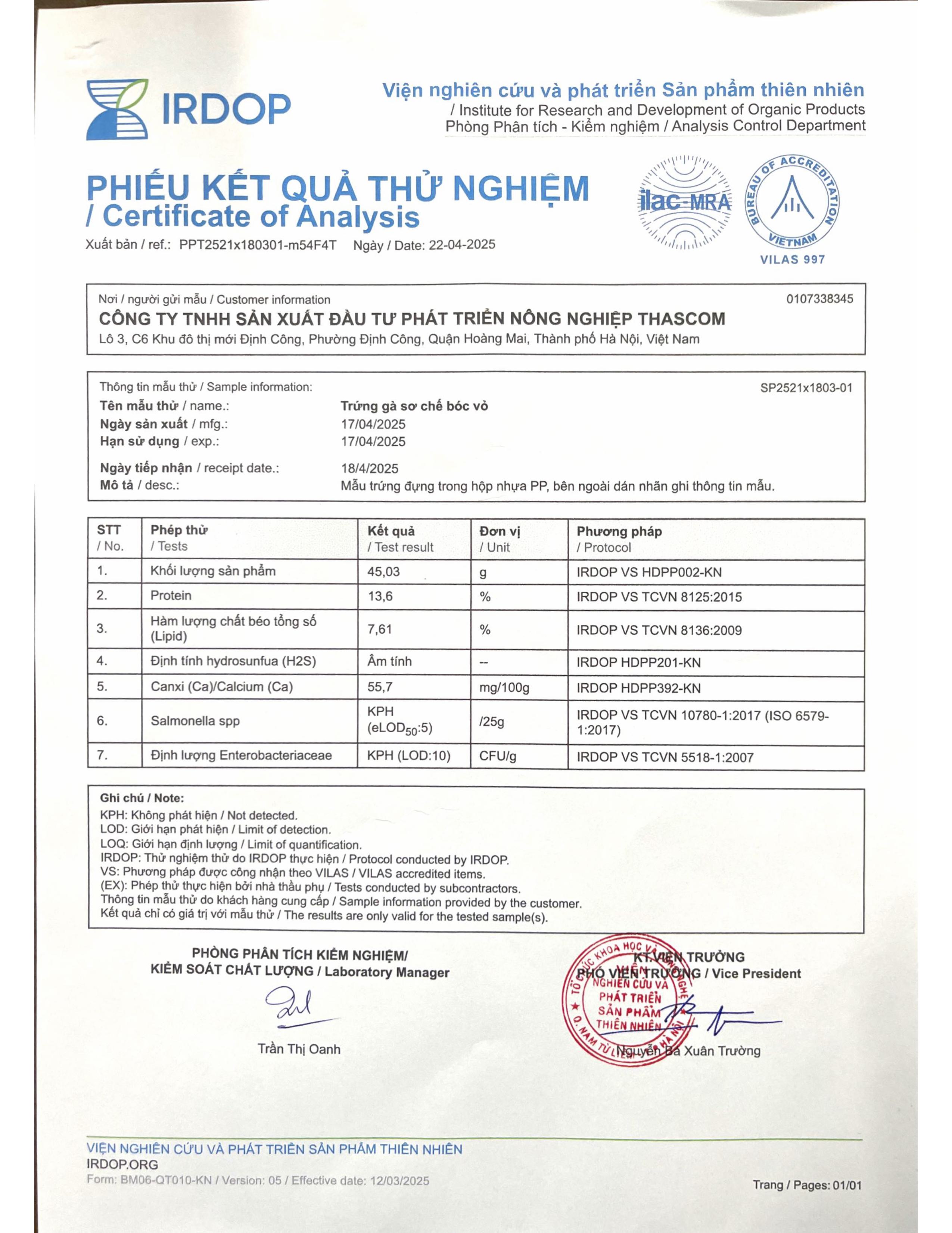 - Tên sản phẩm: Trứng gà sơ chế bóc vỏ - (Cá thể: )