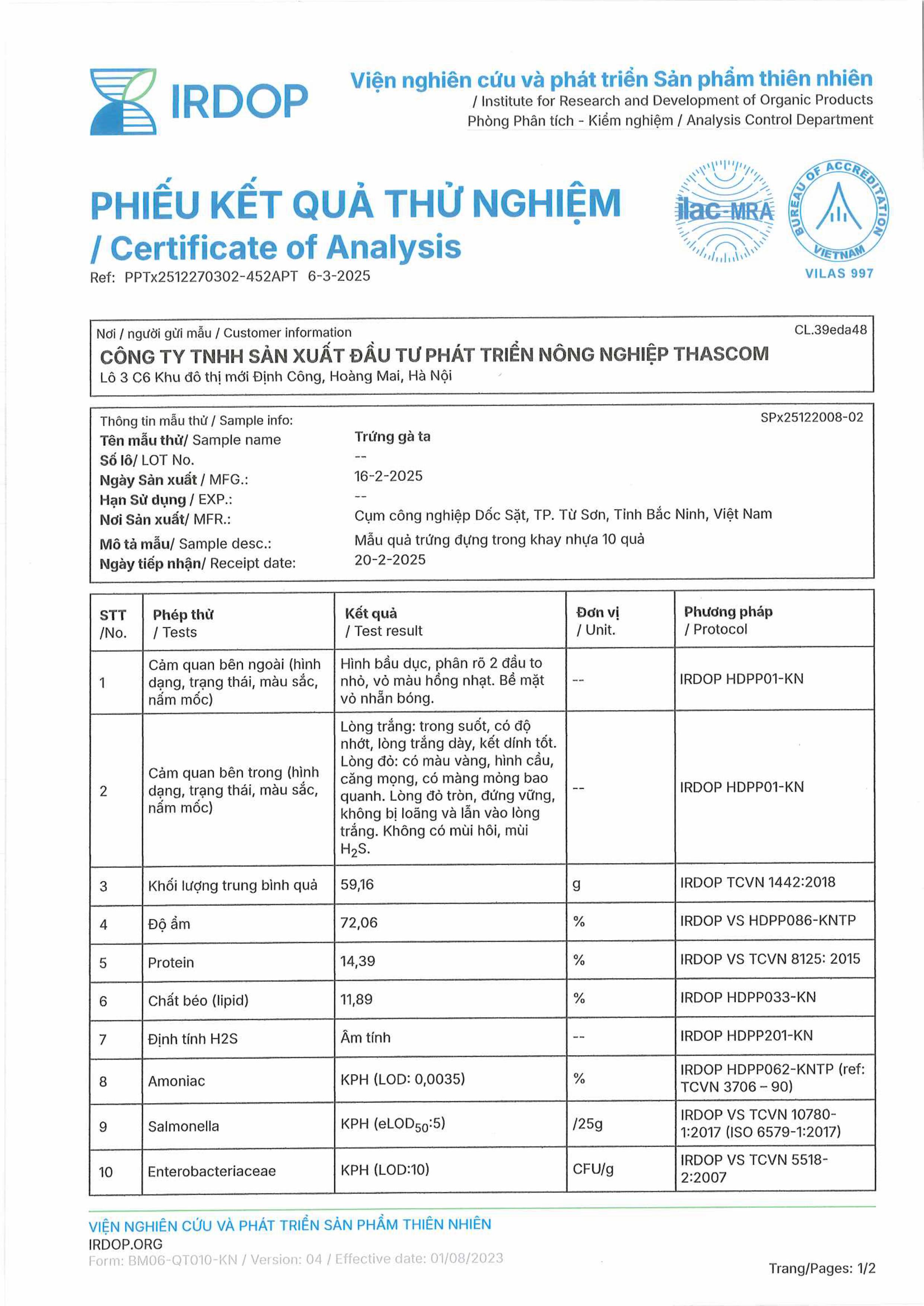 Tên đơn vị/nhà sản xuất: Công ty TNHH sản xuất đầu tư phát triển nông nghiệp THASCOM